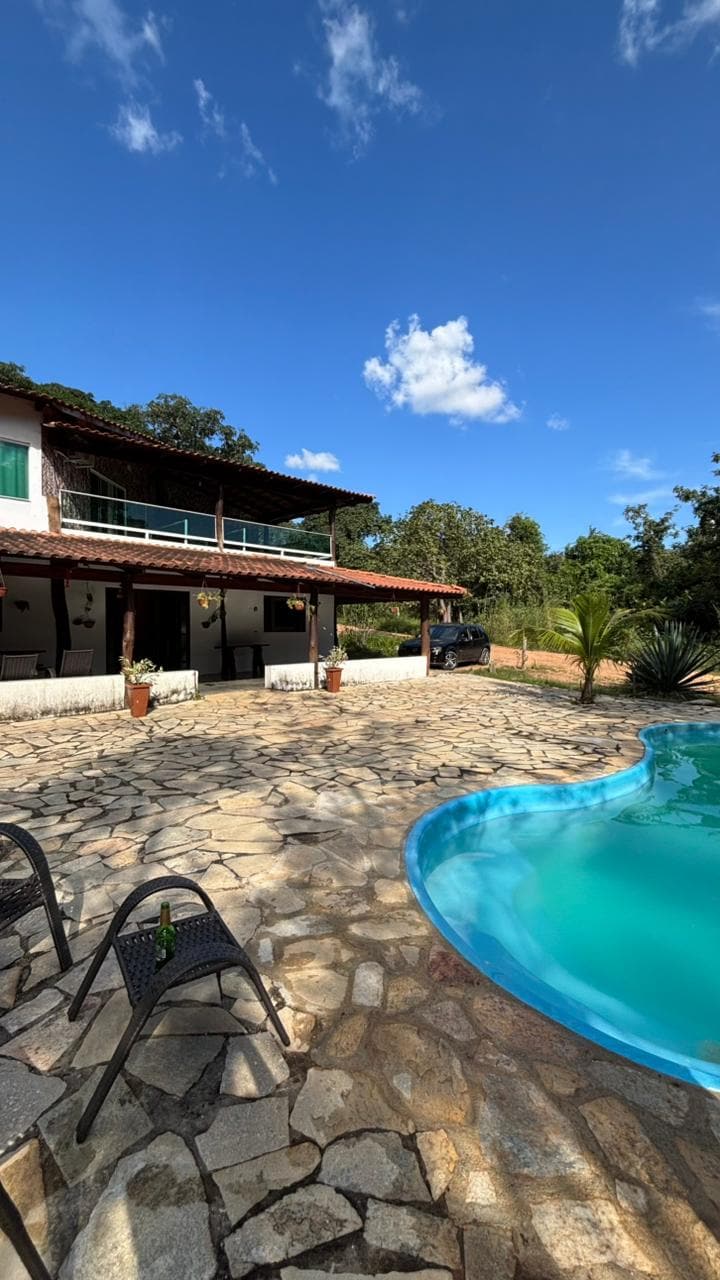 Teljes ház a Chapada dos Veadeiros közepén pihenést tervező csoportok számára. Alto Paraíso csak 18 km-re van! • Teljes belső konyha; • Tágas nappali tévével • Wifi • Külső konyha fatüzelésű tűzhellyel és grillezővel; • Külső fürdőszoba • Fűtött végtelenített medence, integrált jacuzzi hidromasszázzsal és nedves terasszal; • 5 lakosztály és 1 segédszoba, mindegyik légkondicionálóval, ágyneművel és törölközőkkel.