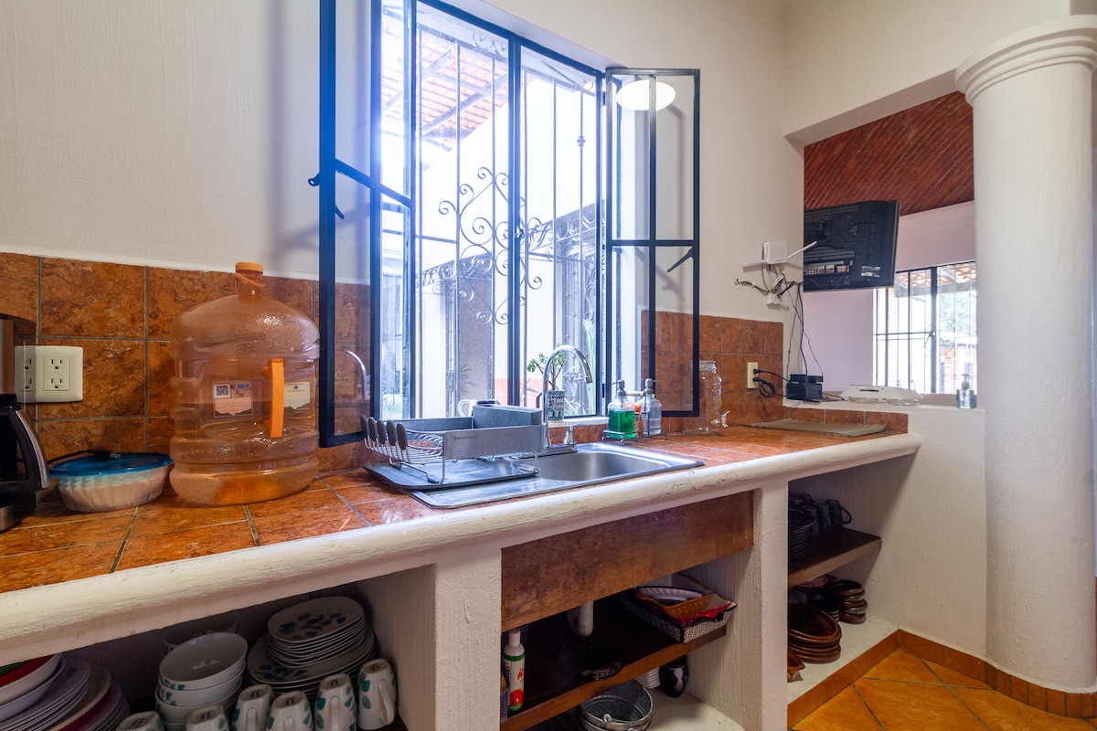 Élvezd ennek az ajijici szállásnak az egyszerűségét. A varázslatos Ajijic város központi térétől néhány lépésre található, a kulturális, gasztronómiai és szabadidős tevékenységek szívében. Ebben a világos helyen hálórész, fürdőszoba, valamint egy kiskonyha található, amelyben kávéfőző, tűzhely és hűtőszekrény, valamint az alapvető konyhai eszközök is megtalálhatók. A közös területeken belül van egy nagy kert, ahol élvezheted a jó kávét. Ideális hely néhány ember számára.