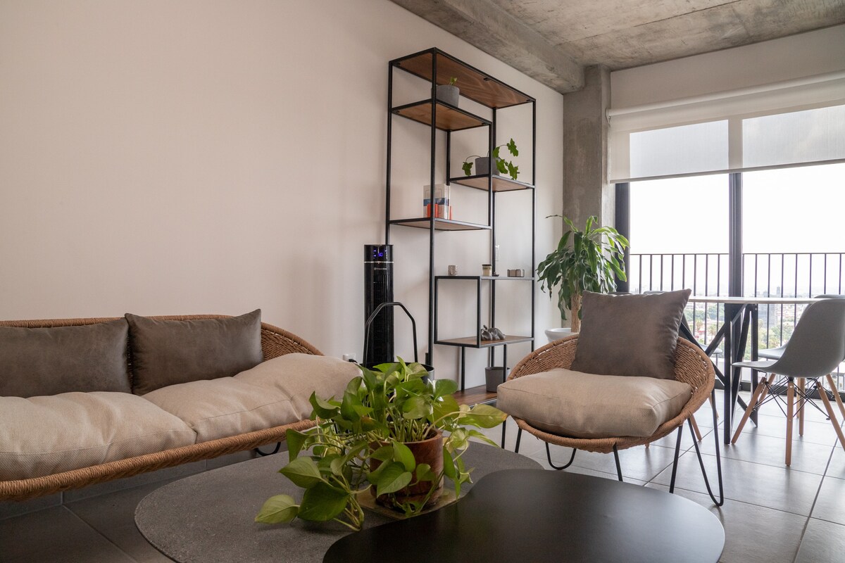 Estamos comprometidos en que tu estancia sea 100% placentera, cuidando cada detalle en limpieza y servicio. Al llegar disfruta la hermosa vista desde el balcón con una botella de vino de cortesía. Ubicado en la mejor zona de Guadalajara, a solo 5 minutos caminando del Corredor Chapultepec, nombrado por Time Out como el vecindario más cool del mundo, rodeado de excelentes restaurantes y vida nocturna. Lo suficientemente cerca para disfrutarlo y lo suficientemente lejos para descansar sin ruido.
