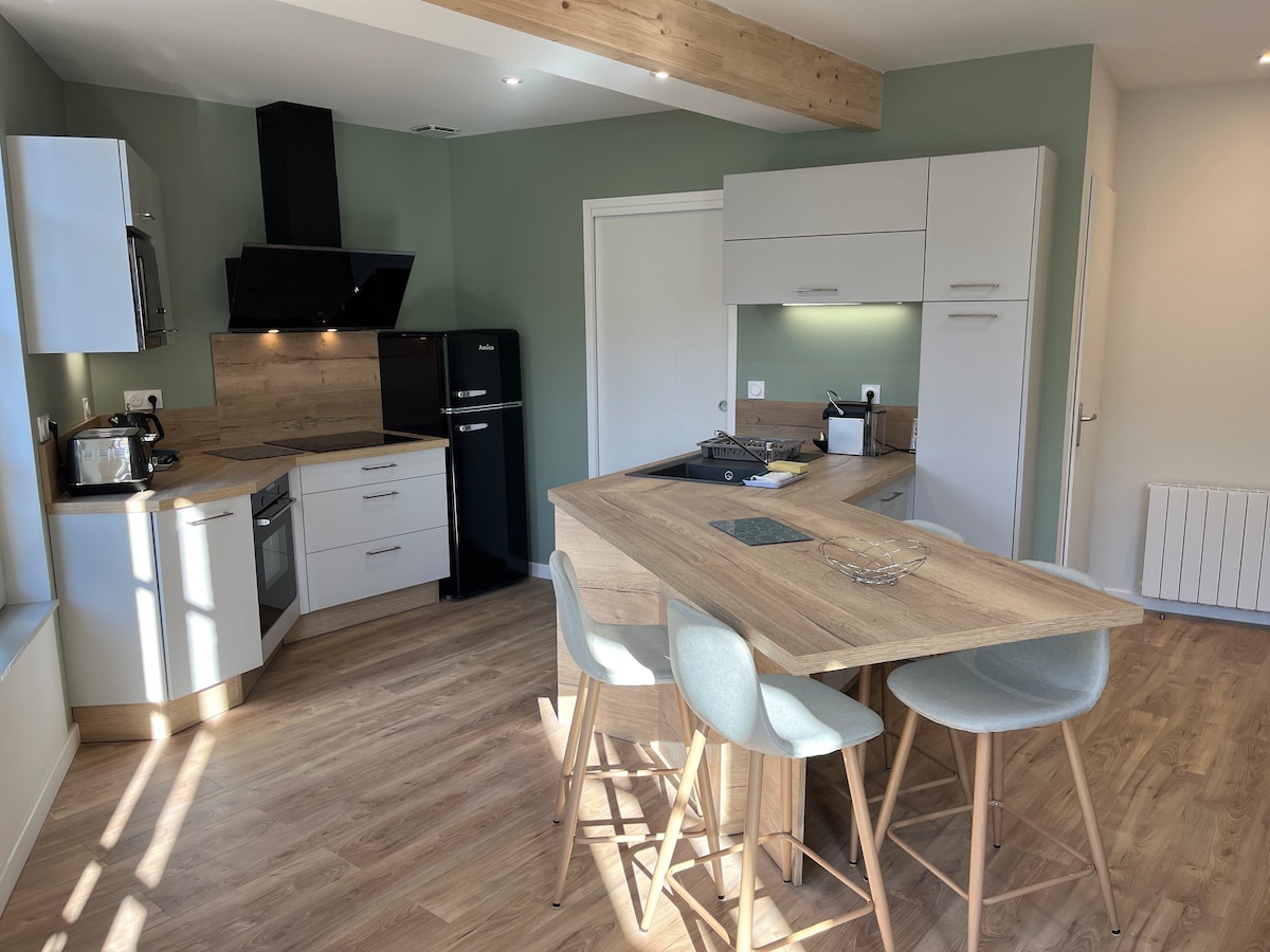 New ! Welcome to the “Le petit Alambic”, Jenny & Jonathan’s housing in the heart of Cognac. We offer a brand new accomodation for up to 4 people thanks to a "real" sofa bed 180 x 200cm in the living room. And, 1 Bedroom with a double bed on the closed mezzanine. We suggest you stay in this furnished accommodation freshly renovated with quality materials. The housing is adjoining our house with an independent entrance.