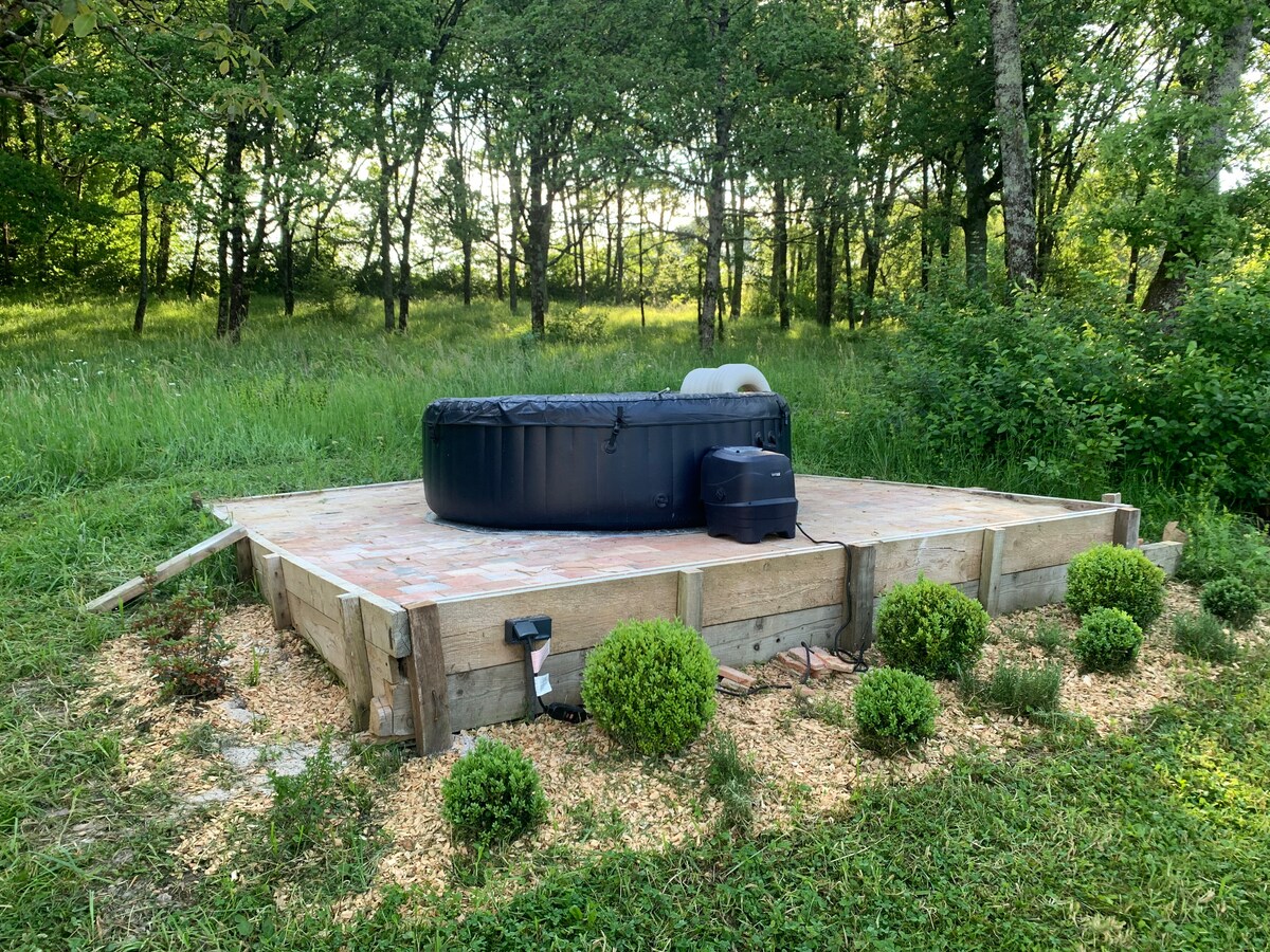 A newly renovated one bedroom house with private jacuzzi/ hot tub and beautiful views across the pool, barbecue pit and overflow jacuzzi. The house is situated on the site of an old 15th Century chateau and stud farm in more than 40 acres of beautiful countryside and lovely walks. Stunning en-suite bathroom and luxury kitchen. King sized bed with orthopedic mattress and Egyptian linens. All towels, including pool towels provided Sofa bed to provide for 2 additional guests.