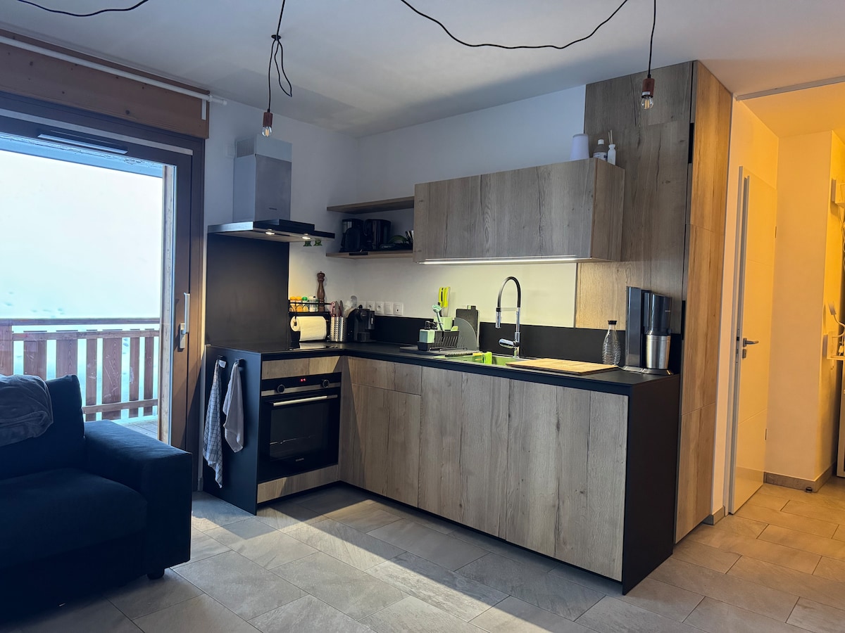Egy gyönyörű, új faházban, amely Samoëns bejáratánál található a déli oldalon, 90 m² -es lakás a földszinten, és egy teraszra nyílik, ahonnan lenyűgöző panoráma nyílik az egész Giffre-völgyre. Ne habozz kapcsolatba lépni velem, örömmel adok több információt, ha szeretnéd. Alice Bruneau