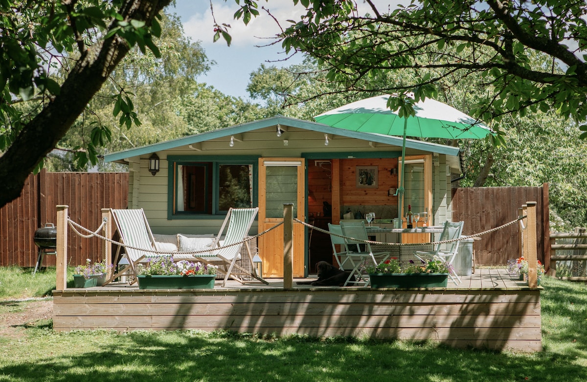 Pancake Lodge is a perfect sanctuary with four poster bed and hot tub. This quirky cabin sits amongst a working apple farm with beautiful views across the glorious Greensand Ridge. Guests can relax in the fabulous surroundings and indulge in scenic walks using the many public footpaths that cross the farm. There are also many local walks too. The historic Leeds Castle is a 5 minute drive, many local pubs and restaurants and the south east coast is within easy reach.