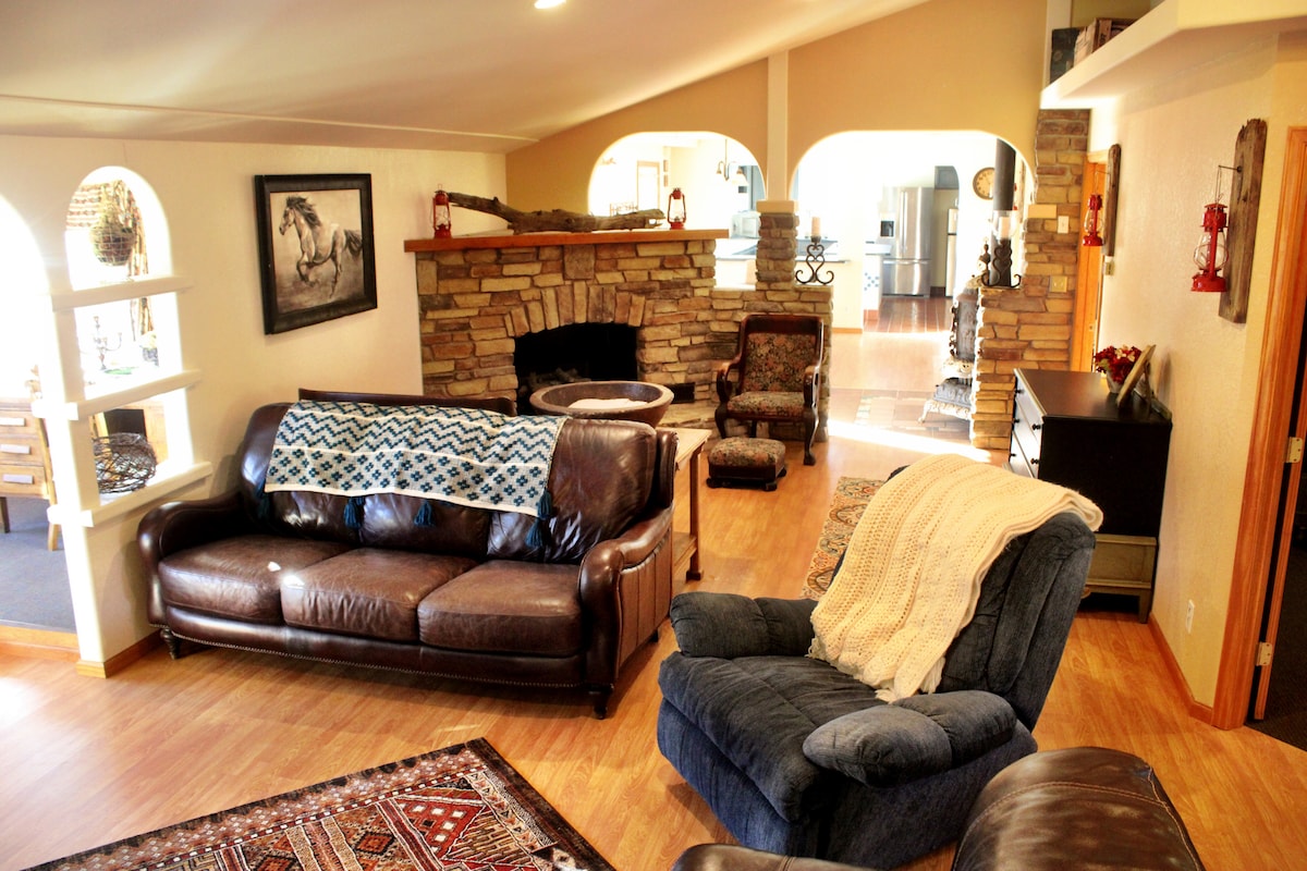 Escape from it all at the Rock Canyon Ranch. This ultimate getaway features your own private 640 acres of beautiful terrain, wildlife and many onsite and nearby activities. No neighbors around for miles-bring your ATV's, horses, hiking boots, mountain bikes or whatever you desire and explore the onsite private trail system. Enjoy your stay at the house which you will find to be clean and cozy. Large open concept kitchen, pool table, large TV, fire pit, horse shoe pit and more. Starlink Wifi