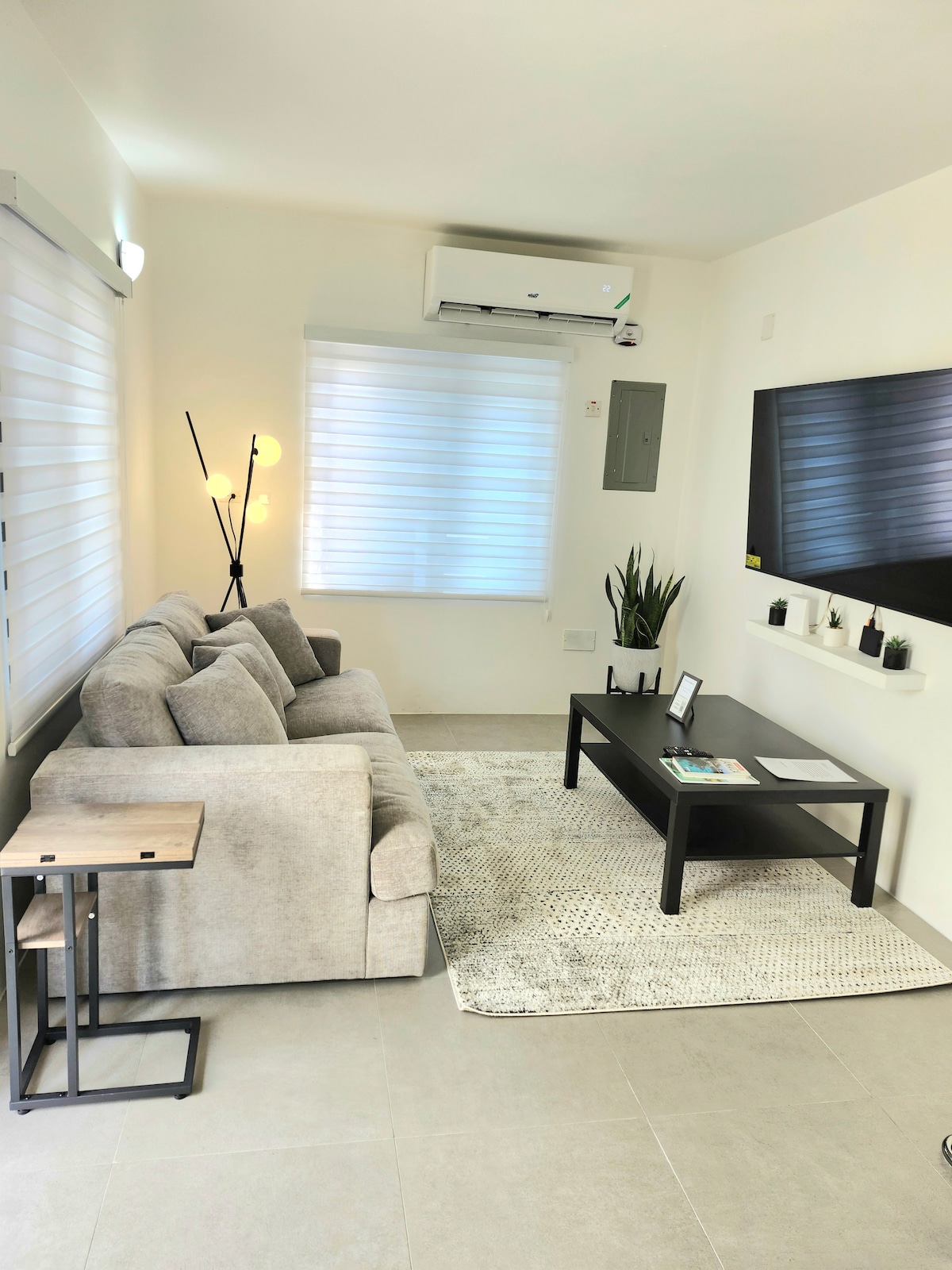 This bright and stylish centrally located 1-bedroom apartment is the perfect space for your stay. It’s Located within 8mins walking distance or 2mins drive to Starbucks, supermarket, pharmacy, and local restaurants. The contemporary living space has everything to make you feel at home Wi-Fi, local cable, Netflix, washer/dryer, ac units, king size bed, a well equipped kitchen and tableware. Have a glass of wine and enjoy the beautiful sunset on the balcony after a long day of work or play.