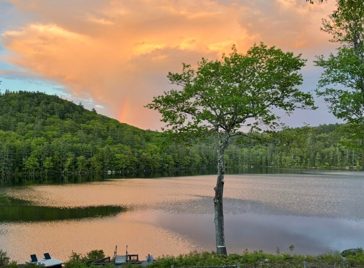 A közvetlenül a vízparton található, egész évben nyitva tartó A-vázas házam 30 percre van a Mount Sunapee-tól, 20 percre a Crotchedtől és 15 percre a Pat's Peak-től! Egy kis, 13 hektáros tónál található a Franklin Pierce-tó közelében, több mint 30 méter hosszú vízparttal. Van egy 6 láb hosszú fő dokk a kajakok berakodásához, és egy kis horgász dokk az oldalán. A tavunkban folytatott horgászatról csak dicséretet hallunk! Az ingatlan egy 1/3 hektáros telken található, egy lejtős dombon. Keene és Concord között található, és a közelben számos nagyszerű túraútvonal és motorosszánpálya található
