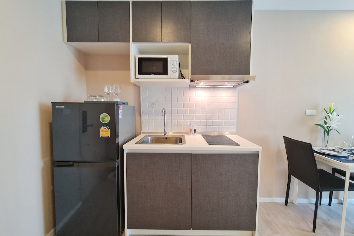 Welcome to your stylish home-away-from-home in the heart of Nimman. This rare, 41m² corner unit on the 6th floor offers spacious comfort and clean elegance. Savor tranquil Doi Suthep Mountain ⛰ views as the sun sets. Evenings invite cozy movie nights on the HUGE 60" Smart TV with a mini theater. A convenient sofa bed sleeps two extra guests for seamless family travel. One Nimman and Maya Mall are minutes away on foot. Enjoy the pool and fitness facilities for a complete, and relaxing stay.