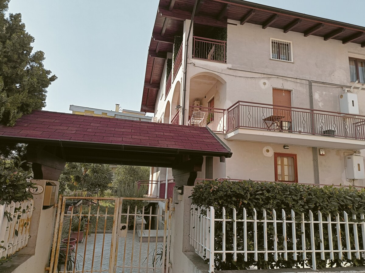 Appartamento di 110mq con due camere da letto immerso nel verde ma a due passi dal centro di Chieti scalo e da locali commerciali, università e siamo a soli 10 minuti dal mare. Offriamo ai nostri ospiti tutto quel che serve per un soggiorno in relax dalla cucina ai servizi igienici. TV led 42 pollici, Wi-Fi, microonde, 3 climatizzatori (uno per camera) nei mesi estivi e spazio all'aperto dove poter mangiare. Tassa di soggiorno da pagare in loco di € 0,80 a persona a notte per massimo 5 notti.