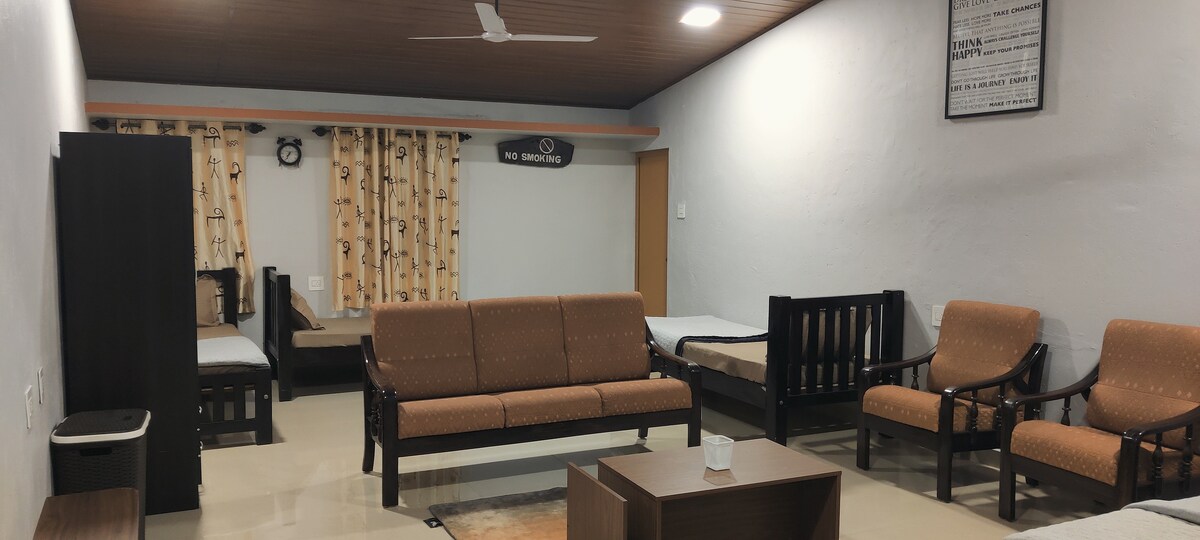 A tágas, jól felszerelt Misty Morning tökéletes egy kis családnak vagy baráti társaságnak, akik egy kis időt keresnek együtt. Kényelmes ágyakkal és ízléses bútorokkal bőven van hely a kikapcsolódásra. Ideális kiindulópont számodra, miközben időt töltesz a Chikamagaluru által nyújtott varázslat felfedezésével. Catch up or plan your daily adventures or simply relax in the shared living space.