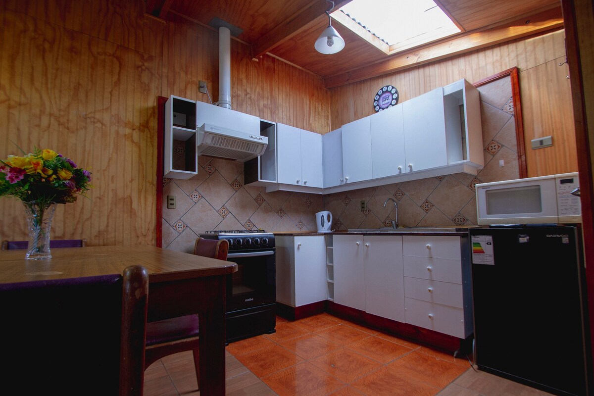 ✅A PASOS DEL CENTRO, RESTAURANTES Y MINI MARKETS.✅CALEFACCIÓN CENTRAL✅CHECK-IN 2PM (FLEXIBLE SEGÚN DISPONIBILIDAD). ✅DOS CAMAS✅FULL EQUIPADO, WIFI, NETFLIX.✅PATIO INTERIOR. Nuestro refugio es tu mejor opción! Disfruta la mejor tecnología en calefacción central, regulable para tu confort. Frente a Ramen japonés, a la vuelta de los mejores completos chilenos, dos cuadras del Mercado. Cercano a 3 minimarket a no más de 2 cuadras. Tenemos 2 Pubs cercanos (2 y 4 cuadras)
