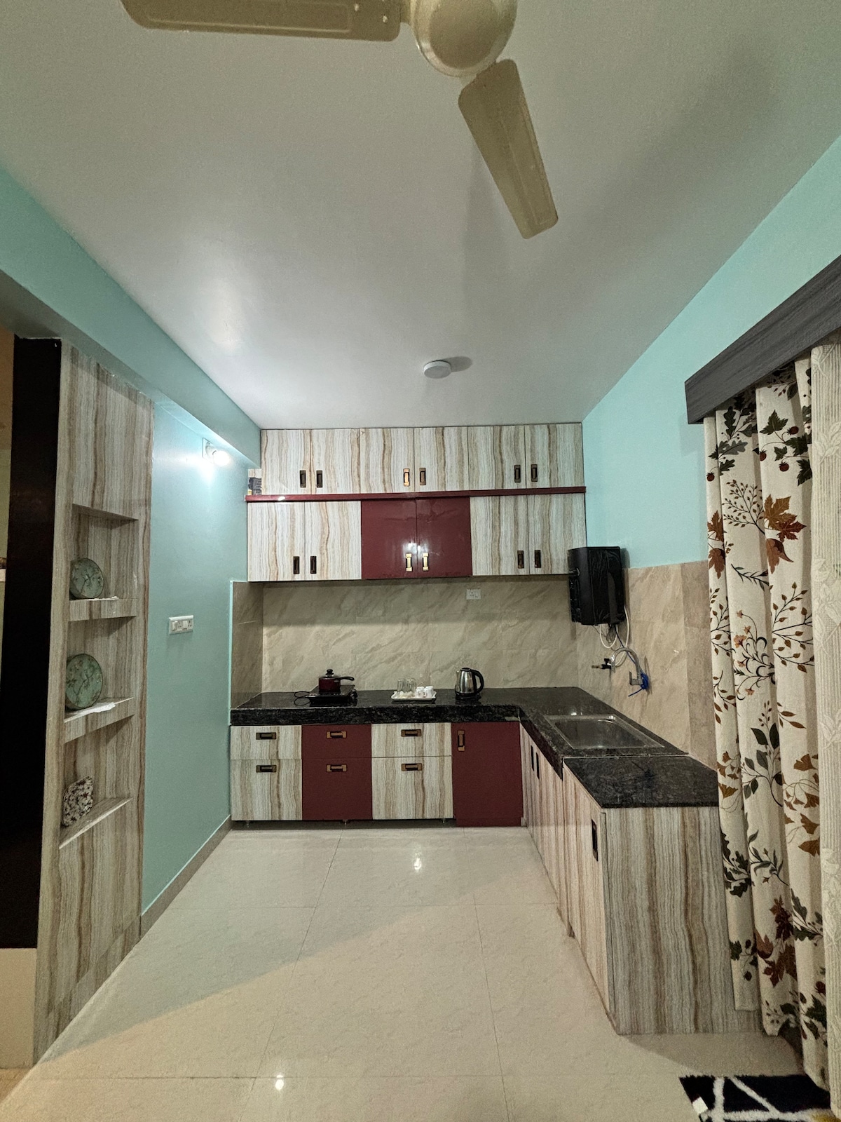 Ingatlanunk egy 1 Bhk hangulatos lakás, mindössze 500-600 méterre Puri kék tengerpartjától. A Lord Jagannath templom 3,5 km-re, a Sun Temple at Konark pedig 38 km-re található az ingatlanunktól. Helyünk funkcionális konyhával rendelkezik, ami azt jelenti, hogy bármit megfőzhetsz, moshatsz (automata mosógép), és itt nézheted az ott-t. a gondnok segít a taxik lefoglalásában, az ételek vagy élelmiszerek rendelésében, a bérelhető kerékpárok vagy autók megszervezésében.