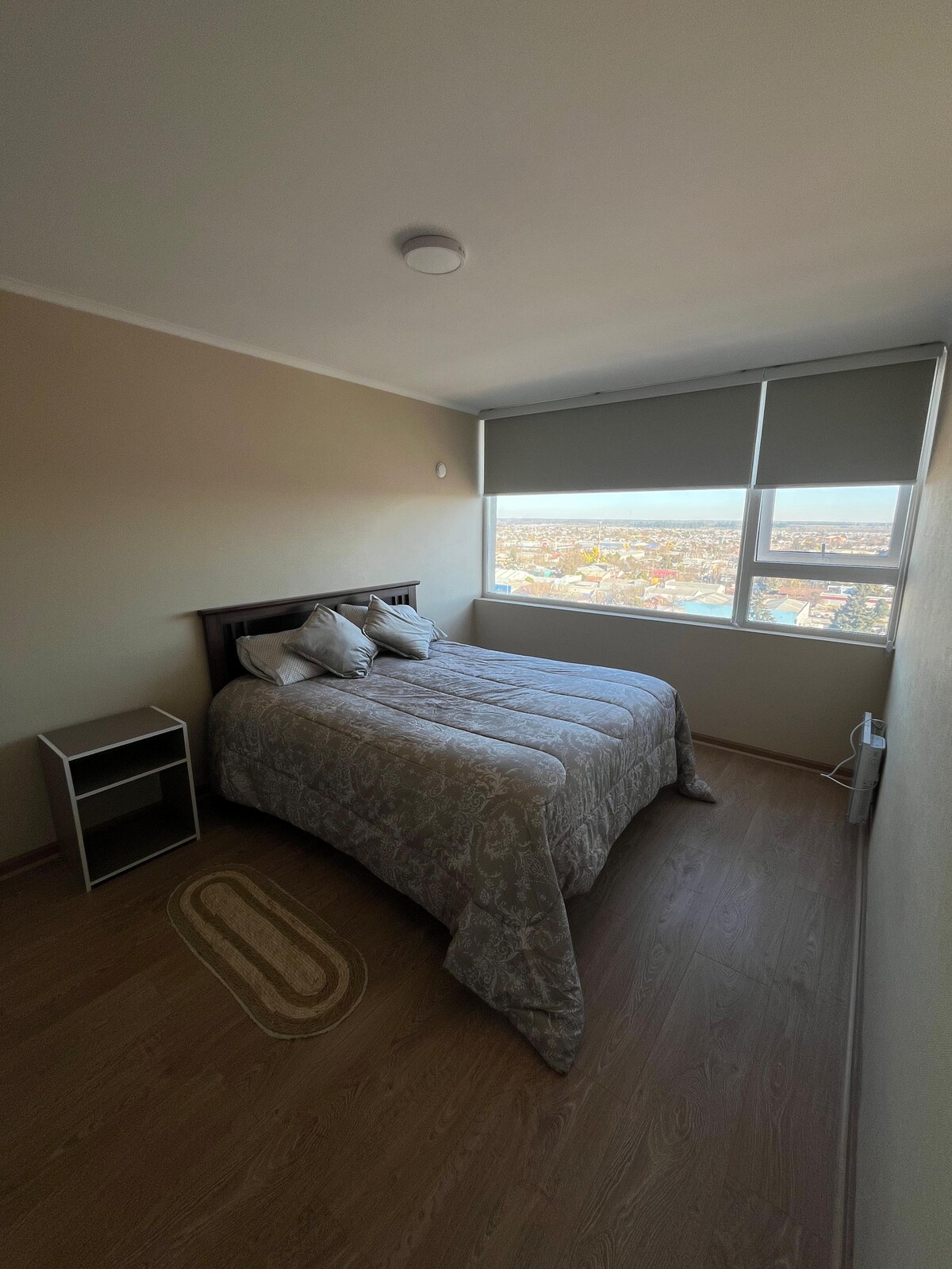 Acogedor departamento con hermosa vista a la cordillera. Disfruta una estadía cómoda en una ubicación privilegiada: a pasos del terminal de buses, supermercado Jumbo, hospital y del centro de Chillán. Ideal para viajes de trabajo o descanso. Cuenta con 3 dormitorios amplios, 2 baños completos, cocina equipada, living-comedor con aire acondicionado, WiFi, TV, estacionamiento, Seguridad 24/7, espacios comunes y piscina. Piscina cerrada actualización 13/02 Departamento en 5topiso