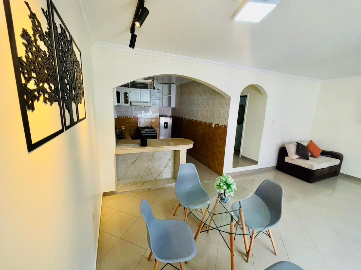 Üdvözöljük a Departamento Dodóban, egy modern térben Torre Napoliban, egy újonnan megnyitott épületben, teljesen berendezett és felszerelt. Élvezd a 2 hálószobát, 2 teljes fürdőszobát, a teljesen felszerelt konyhát, a minibárt, a nappalit, az étkezőt és a munkaterületet. Riobamba belvárosának szívében található, mindenhez közel, panorámás kilátással a városra, terasszal, zöld területtel, grillezéssel, wifivel, mosodával és 2 lifttel. Ideális azok számára, akik luxust, kényelmet és közelséget keresnek mindenhez. Modern otthonod a város szívében!