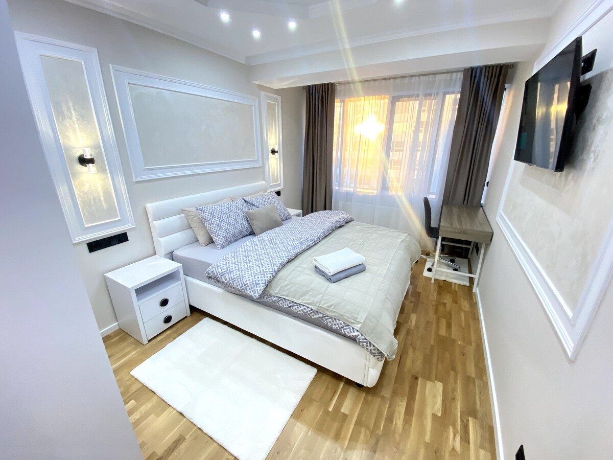Ideális azok számára, akik valami különlegesre és nagyszerű helyszínre vágynak a város felfedezéséhez. Ez a fantasztikus garzonlakás Csisinau történelmi központjában található, sétatávolságra az éttermektől,bevásárlóközpontoktól és a fő turistalátványosságoktól. Az apartman jól megtervezett, kényelmes és stílusos környezetet teremt a szálláshelyen eltöltött idődhöz. A 15. emeleten található teraszáról csodálatos panoráma nyílik a városra anélkül, hogy bármilyen épületbe ütközne.