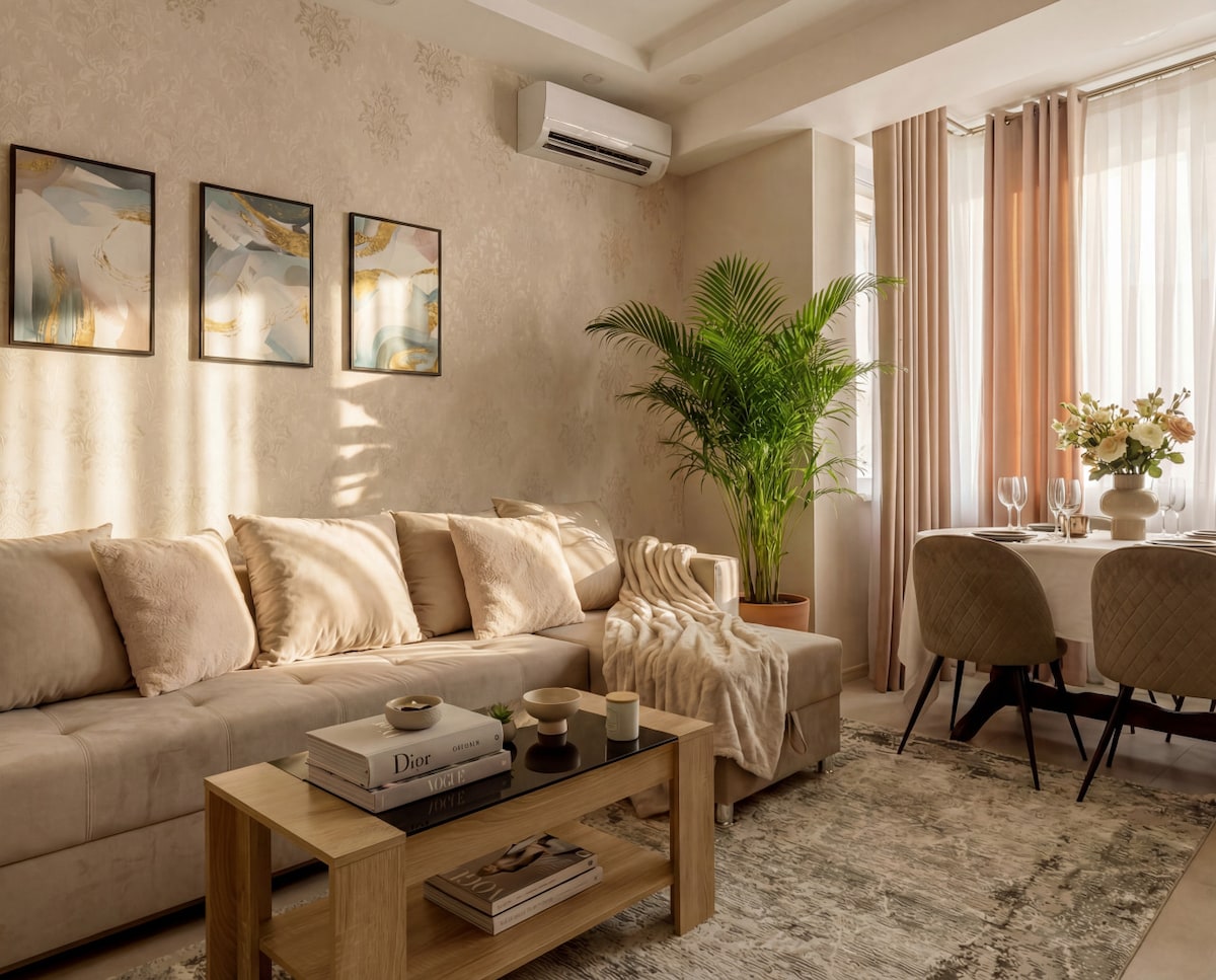 Élvezd a pihentető szállást Chișinău szívében, egy modern és barátságos lakásban. Központi elhelyezkedésének köszönhetően gyorsan megközelíthetők a hangulatos kávézók, éttermek, parkok és városi látnivalók. A következőkkel várunk: • Kifogástalan tisztaság • Friss ágynemű és makulátlan törölközők • Fürdőszobai alapkellékek (tusfürdő, sampon, fogkefék) • Nagy sebességű Wi-Fi (500 MB/s) • Okostévé Netflixszel • Független önálló bejutás A lakásban két hálószoba és egy nappali található, és legfeljebb hat vendég szállhat meg benne.