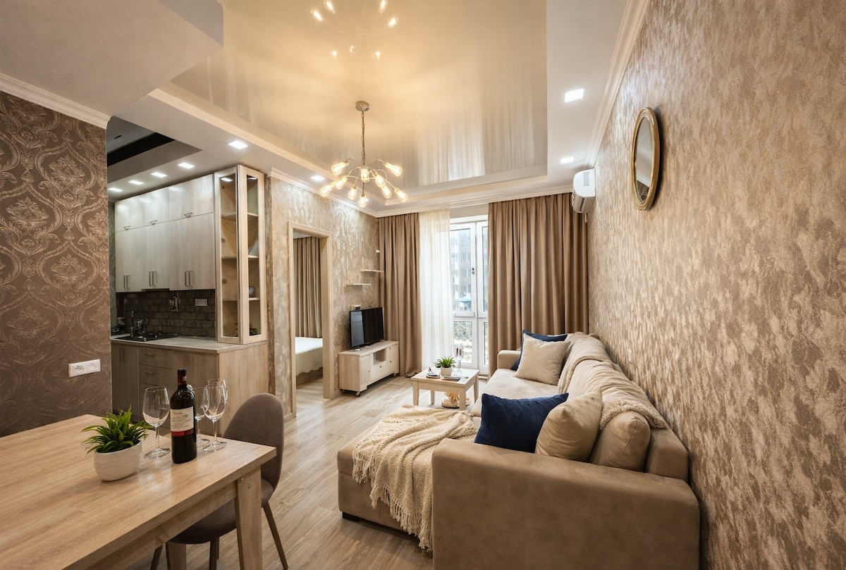 Escape to your private entertainment haven in Kutaisi! Whether it's raining or scorching hot outside, our apartment is the perfect retreat to relax, unwind, and have fun, located just a ten-minute walk from the city center. Step into a stylish and comfortable apartment designed for both relaxation and entertainment. The space is your personal cinema and game room, all in one.