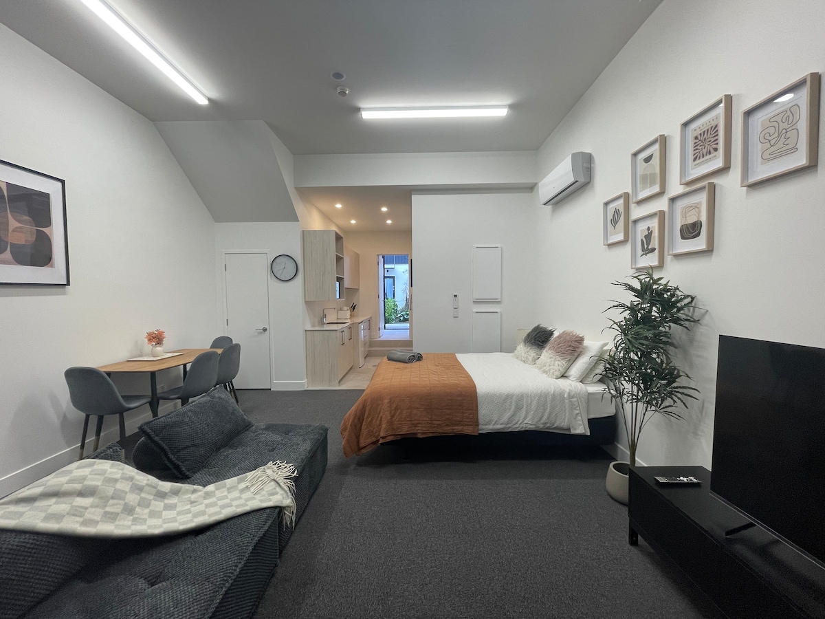 Újonnan épült kétszintes sorház Christchurch központjában. Ez az 1 hálószobás, 1 fürdőszobás, kanapéággyal rendelkező ingatlan tökéletes a város felfedezéséhez. A vendégek imádják: „Csodálatos szállás, otthon érzem magam!” „Nagyszerű elhelyezkedés, közel a tömegközlekedéshez és a Lime robogókhoz.” „Hangulatos, új ház jó kommunikációval a házigazdákkal.” „Rendezett, olyan hőszivattyúval, amely tökéletes volt a hidegebb éjszakákra.” Csak egy rövid sétára van a Margaret Mahy játszótér, ahol főzhetsz vagy vacsorázhatsz. Kényelmes kiindulópont a látogatásodhoz!