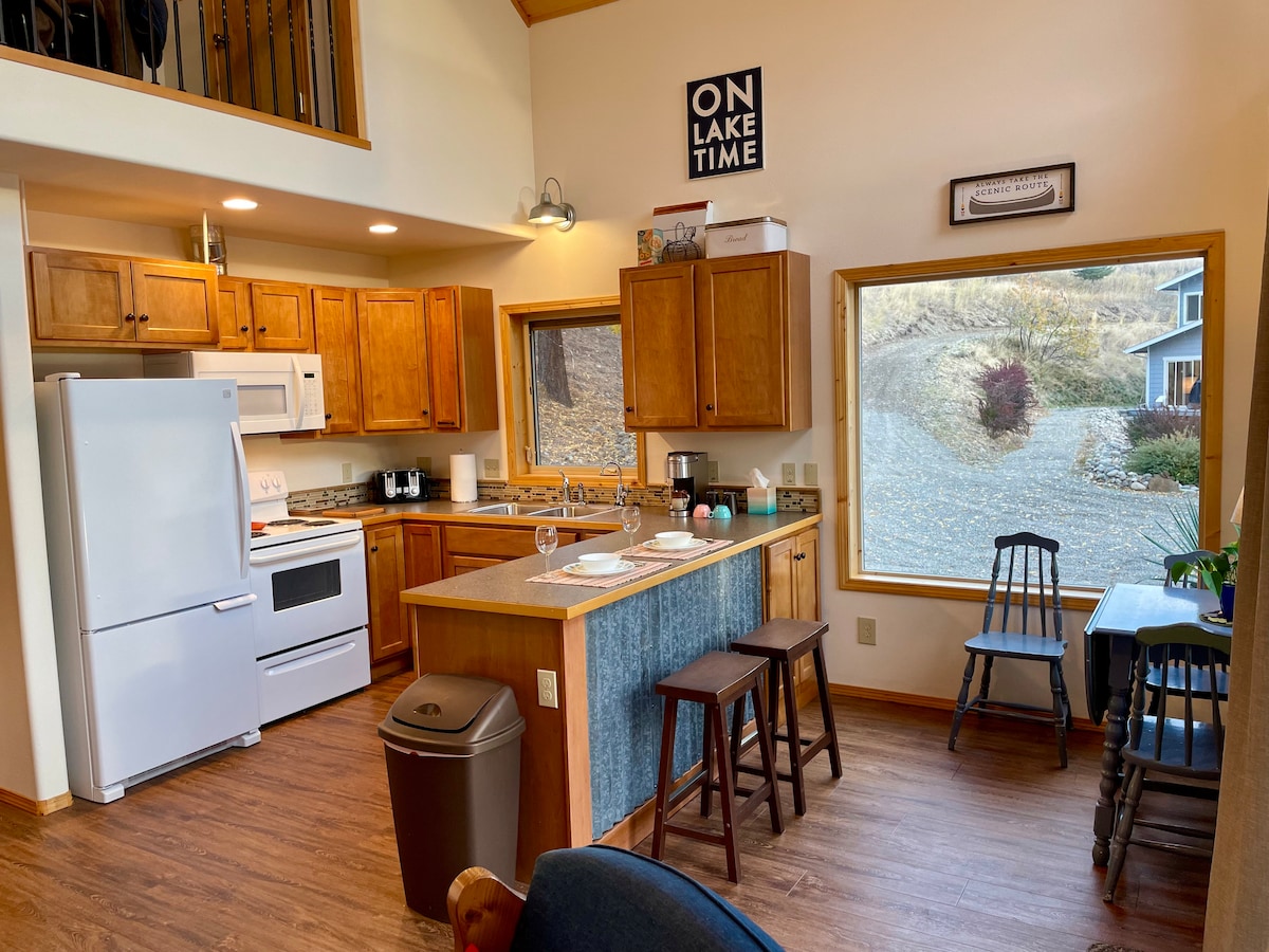 Üdv a „Tóparti művészeti stúdióban” a brit columbiai Christina-tónál! Békés tóparti kiruccanás, ahol a természet és a kényelem találkozik. Ébredj a tóra nyíló lenyűgöző kilátásra, kortyolgasd a reggeli kávédat a hangulatos teraszon, és lazíts a beltéri vagy kültéri kandallónál napnyugtakor. Privát dokkolóval elmerülhetsz BC legmelegebb tavában úszni vagy evezni. Belül egy teljesen felszerelt konyha és egy gyógyfürdőszerű gőzzuhany található. Pihenj, fedezz fel, vagy mindkettő! Ez a tóparti szálláshely a tiéd.