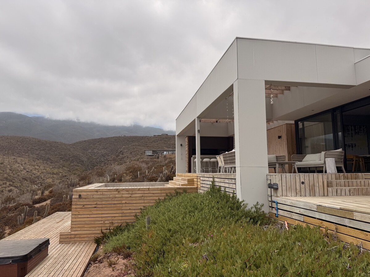 A solo 2 horas y media al norte de la ciudad Santiago, se ubica esta luminosa casa de arquitectura contemporánea ubicada en primera línea con espectaculares vistas al Océano Pacifico. Bajando por una pequeña escalera de hormigón se accede a una hermosa Cala. Además, a pocos minutos caminando hacia el norte y sur, se ubican otras preciosas playas.