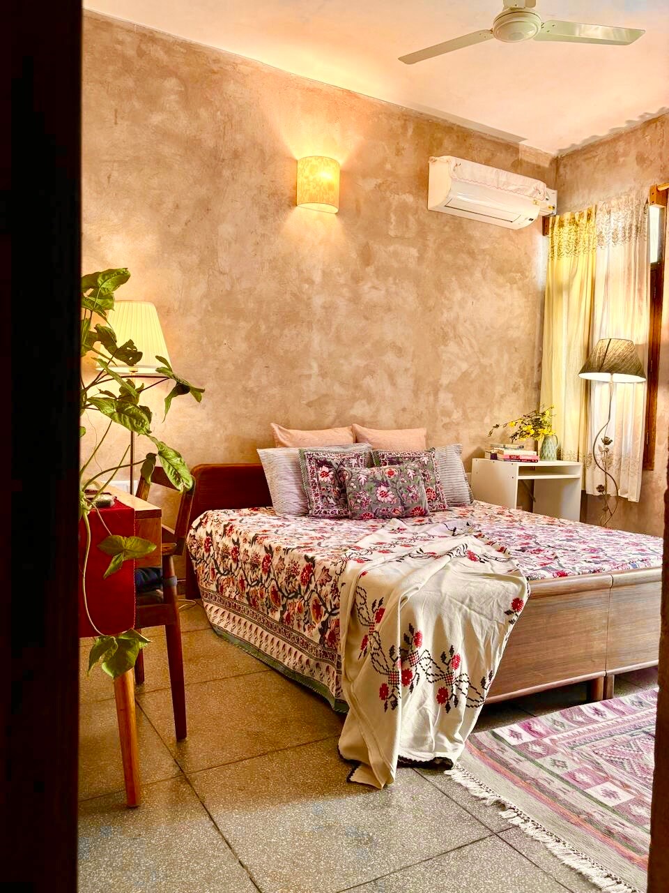 Üdvözlünk az Apricot Garden Courtyardban, egy nyugodt kerti otthonban a Chandigarh-i DLF Hyde Parkban. A privát udvar köré épült, napfényes belső terekkel rendelkező hely a nyitott betonpadlókat, a nyers textúrákat és a földes tónusokat ötvözi a modern kényelemmel. Ideális pároknak, kreatívoknak és távolról dolgozóknak, akik értékelik a magánéletet és a nyugalmat. Lépj be a növényekkel szegélyezett udvarra. Dolgozz nagy sebességű internettel. Lazíts a légkondicionálóval, a forró zuhanyokkal, a tartalék áramforrással és a konyhai alapkellékekkel. Természetes hangulat. Modern funkciók.