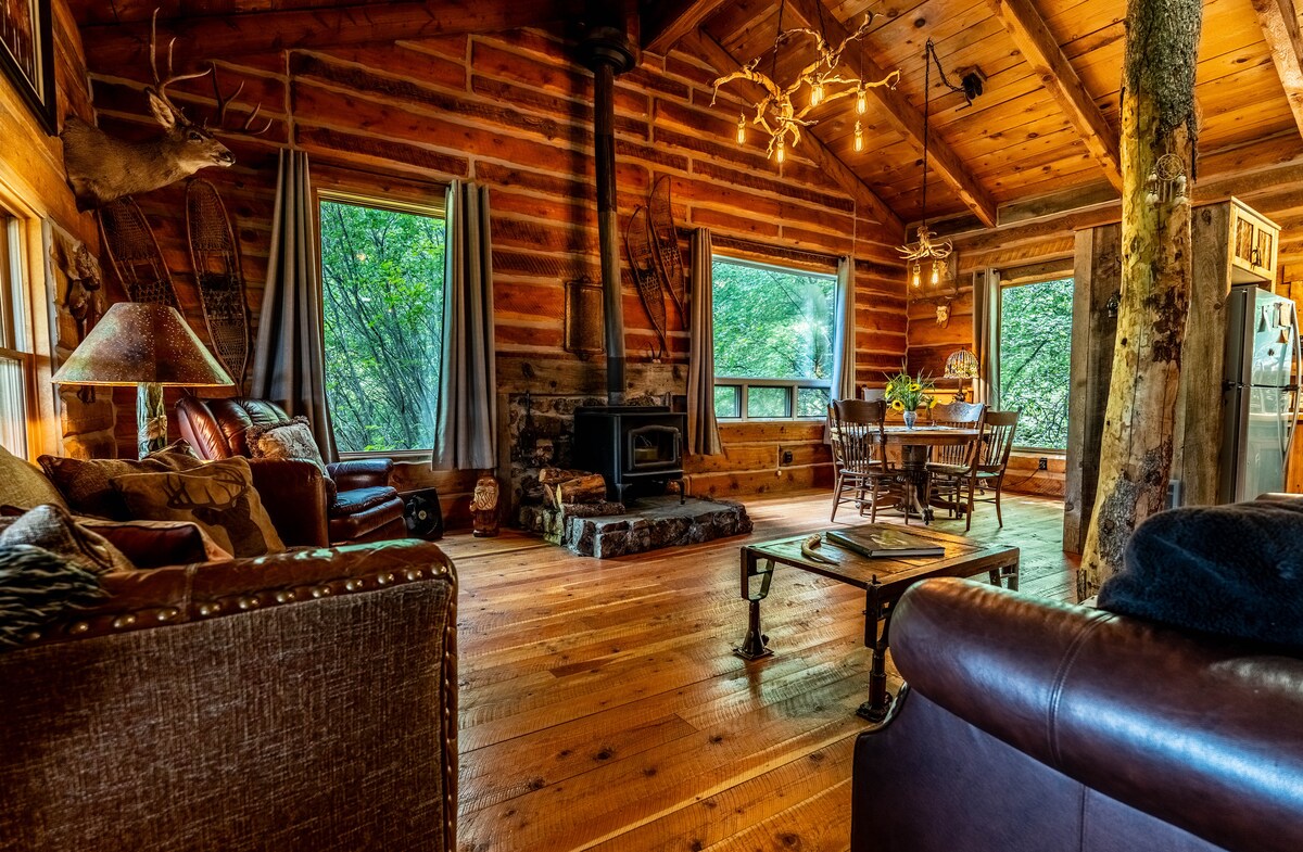 Pihenj és lazíts a Country Cabinban, ahol az út végén található, és csodálatos panorámát kínál a Bridgerre! Ez a nemrég felújított 14x42-es kabin rönk külseje gyönyörű nyelvvel és barázdával rendelkezik! Country Cabinunkban található egy hangulatos gázkandalló, ROKU tv (több mint300 élő csatorna), Wi-Fi, saját hálószoba queen méretű ággyal, egy bőr futonágy a nappaliban, amely lehajtható egy teljes méretű ágyra, 3/4-es fürdőszoba csempézett zuhanyzóval és egy külön mosdóhelyiség. Nyugodtnak és felfrissültnek fogod érezni magad!