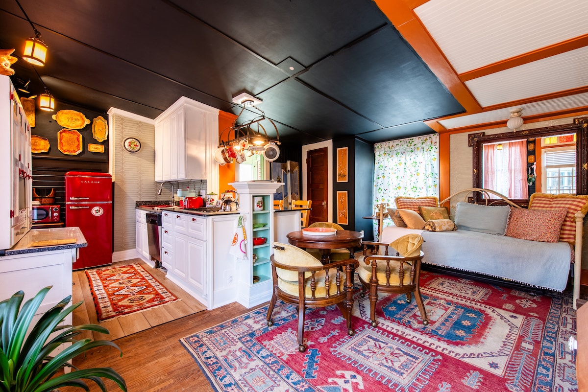 The perfect getaway to luxuriate in the center of Louisville! Boasting 11-foot tall ceilings, 75" televisions, and a spacious downstairs floor plan that includes a pool table, living room (with velvet sofas), and an open-air basement rec room with spiral staircase and fur bean bags. We decorated our home to provide as much comfort & entertainment as possible: super-cushy king-size memory-foam beds, vast porch space (with grill), and eclectic art to feed your eyes & mind. We hope you enjoy it!