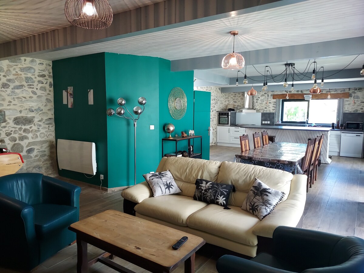 Proche des Pyrénées au cœur d’un village paisible, corps de ferme entièrement rénové associant charme de l’ancien et modernité. Maison attenante à une partie indépendante que nous habitons. grand séjour de 75 m² avec cuisine équipée et terrasse couverte avec plancha. Au rez-de-chaussée 3 chambres avec dressing et TV au plafond. Salle de bain avec douche italienne et baignoire balneo . Sèche-linge, lave linge et frigo. Terrasse extérieure avec jacuzzi!! Piscine avec 2 bassins!! FIBRE HAUT DEBIT