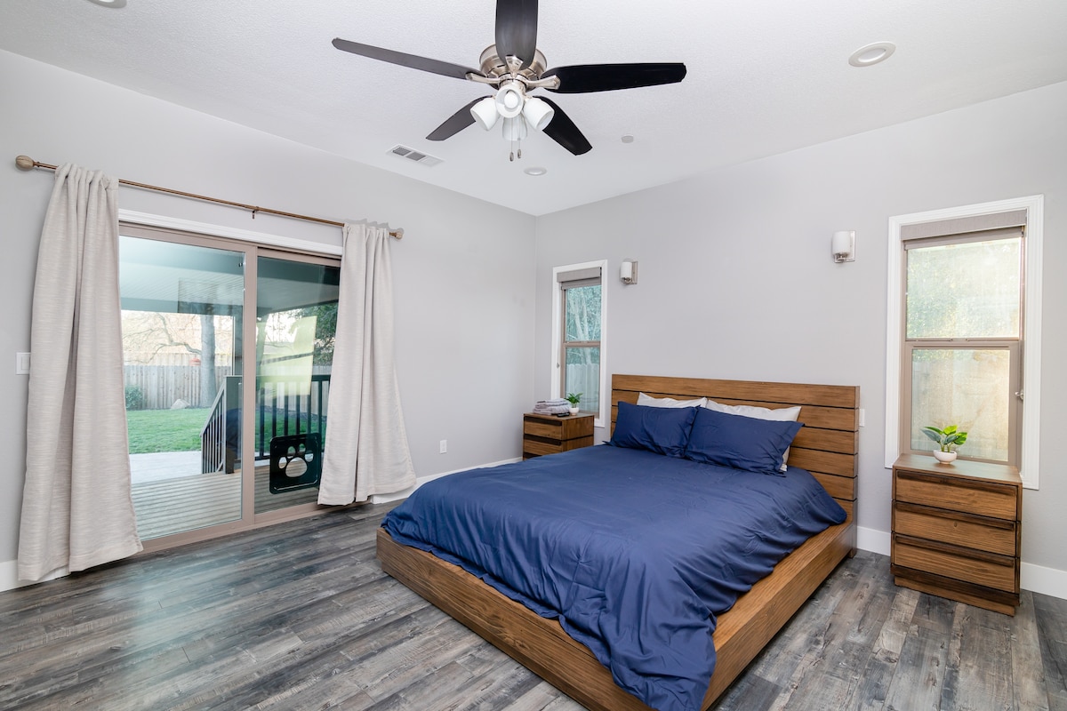 This private guest suite is ideal for relaxing after a day out. Features include a dual vanity, stand-up shower, plus a mini fridge, freezer, and microwave. Walk to Marketplace at Birdcage for shopping and dining, and within 15 min explore American River, Westfield Galleria at Roseville, or historic Folsom.