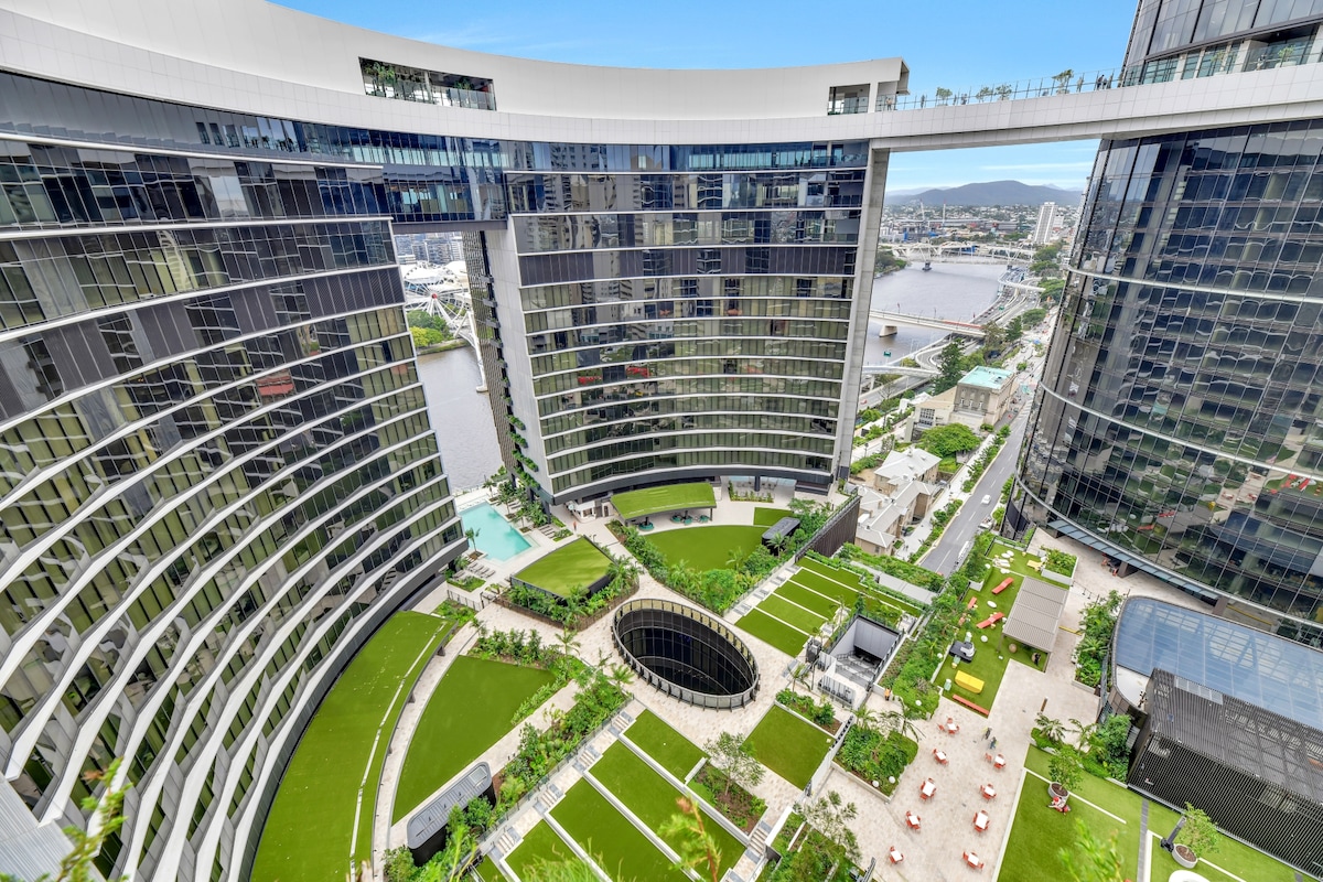 Lenyűgöző kilátás nyílik a folyóra és a botanikus-kertre, a king-size egy hálószobás apartmanunk, amely tökéletes a rövid és hosszú távú foglalásokhoz. A belső Cbd negyedben található Brisbane SkyTower épülete mindenhol közel van! Az apartman jellemzői: - Tágas hálószoba king-size ággyal és beépített gardróbbal. Friss törülközőt és ágyneműt biztosítunk. -Sofa ágy a nappaliban -Központú légkondicionálás - Gáztűzhely teteje teljes szakácskonyhával - Távolítsd el a mosóterületet - Mosógép és szárítógép - Kávéfőzőgép -arts TV - Ingyenes WIFI