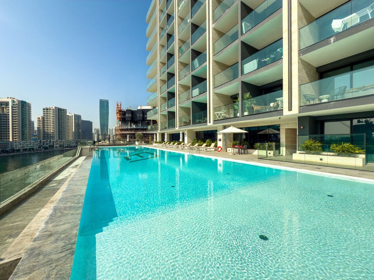Luxus 2 hálószobás medence melletti menedék a Dubai Creek Harbourban