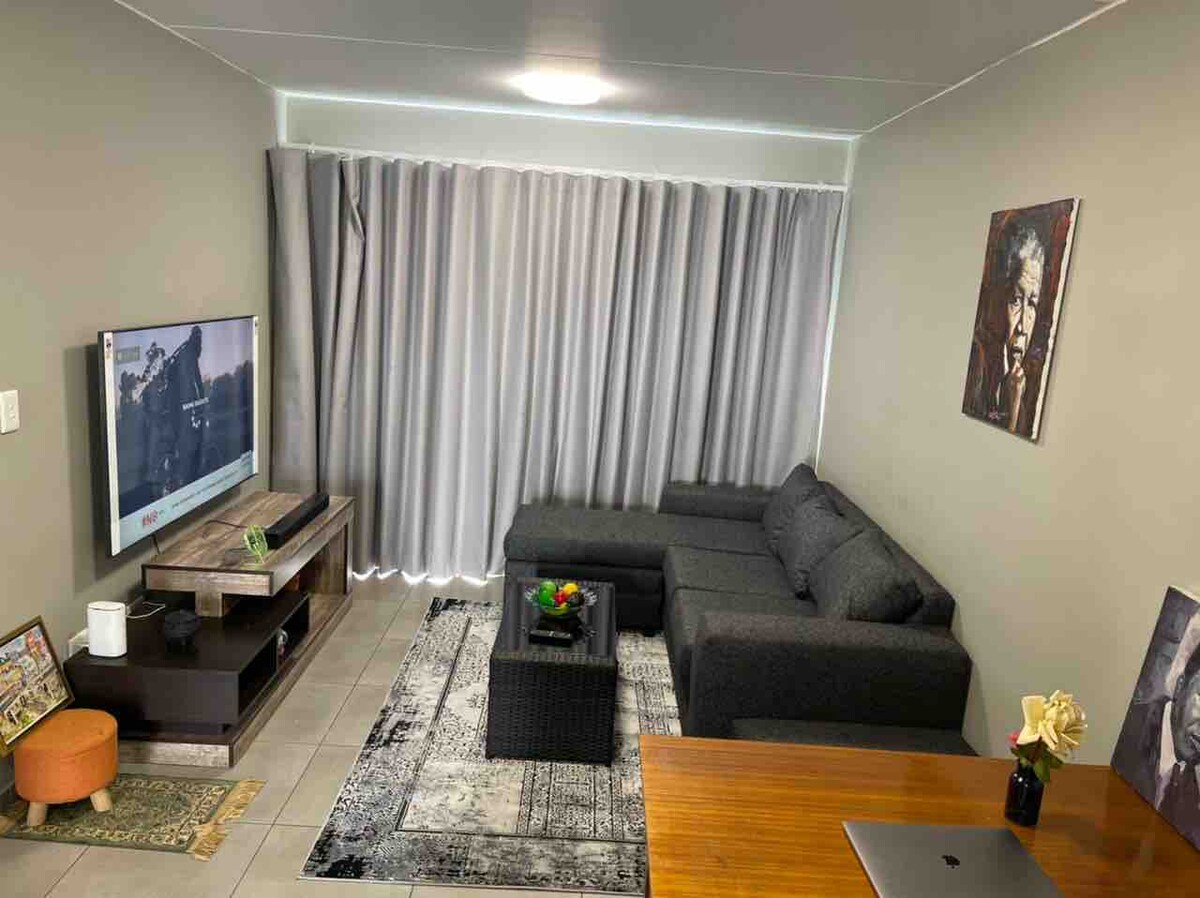 Modern, teljesen berendezett, biztonságos és csendes apartman a Melrose Arch szívében. Ez a tökéletes városi kiruccanás, és alkalmas szabadidős és üzleti utazásokhoz egyaránt. Korlátlan szálas internet, biztonságos és nyugodt környezet, 65hüvelykes TV (társalgó), valamint egy 40hüvelykes TV (hálószoba). Kényelmes helyen, a Melrose Arch bevásárlónegyedben található, ahol minden üzlet és étterem elérhető. Tartalék generátor az épületben, biztonságos és védett privát parkolás 24 órás biztonsággal 😊