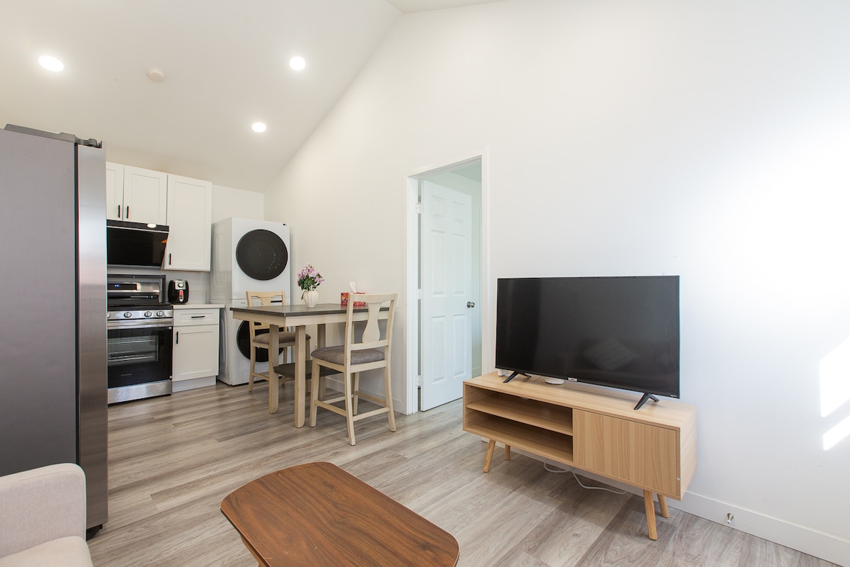 This clean, private 1-bedroom home is thoughtfully designed for comfort and convenience: • 🍳 Full-size kitchen with all essentials • 🛏 Cozy bedroom with quality linens • 💻 High-speed WiFi for work or streaming • 🛁 Private jacuzzi hot tub (fits 1) inside the unit for ultimate relaxation • 🌟 Professionally cleaned & sanitized before every stay