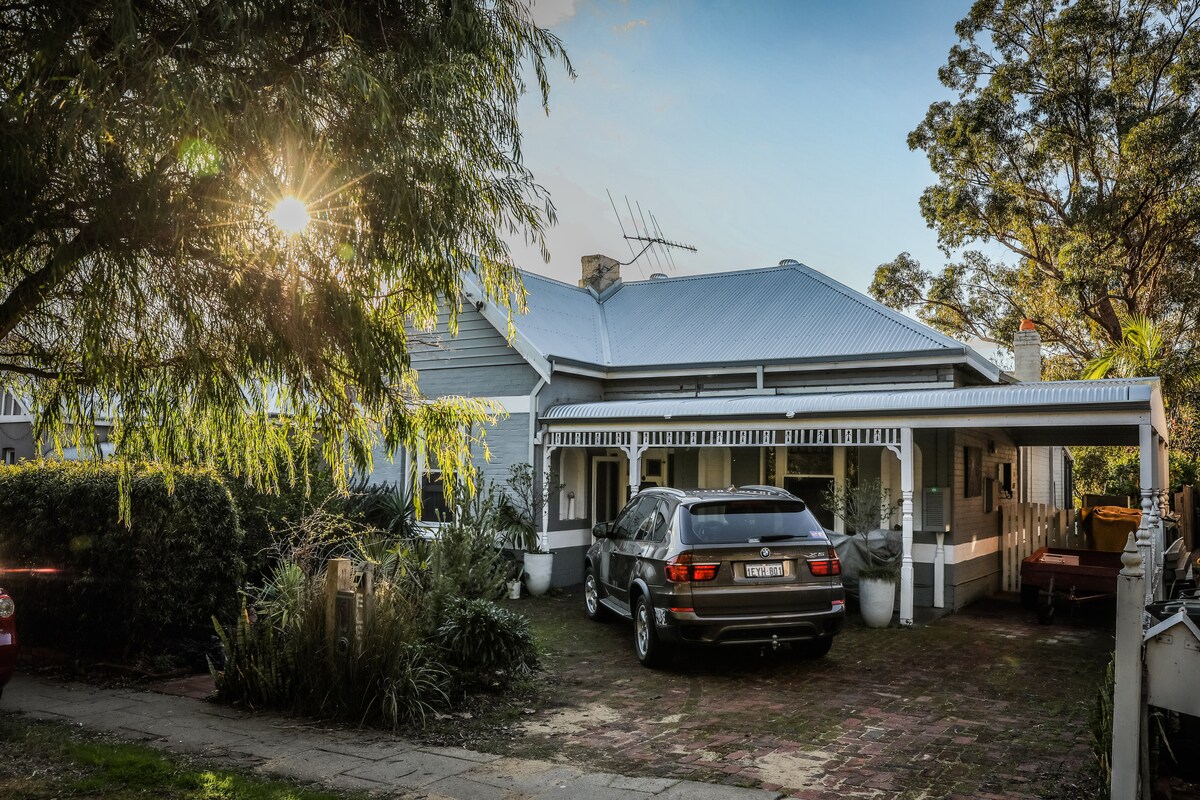 Tágas, 100 éves vendéglakosztályunk sétatávolságra van az UWA-tól, a Perth Children 's Hospitaltól, a Sir Charles Gairdner-től és a Hollywood Hospitaltól. Egy nagy nappaliból áll, amely egy tágas hálószobához csatlakozik, amelyben egy nagy, újonnan felújított fürdőszoba található. A bejutás egy privát bejáraton keresztül történik a házunk előtt. A ház hátsó részében lakunk, így a helyszínen könnyen elérhetők vagyunk, hogy megfeleljünk az igényeidnek. Vedd figyelembe, hogy nincs mosógép vagy főzési lehetőség. Nemrég telepítettünk egy légkondit!
