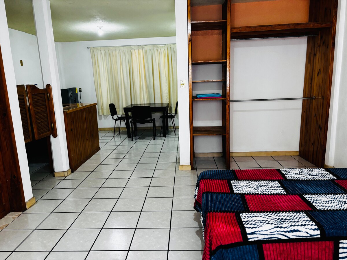 Disfruta de la sencillez de este alojamiento tranquilo y Céntrico. Ubicado en Centro Comercial Rio a 5 min caminando del centro de Rioverde, cerca encontraras Tiendas departamentales, Farmacias, Restaurantes, Pizzas, Taquerías, Fruterías, etc. Prácticamente a pie de Carretera San Luis Potosí-Cd Valles y a 5 min de la Central de autobuses... Cuenta con 1 recamara con 2 camas matrimoniales, Cocina (estufa, micro, refri), comedor, baño c/agua caliente las 24hrs, Internet por Fibra Óptica.
