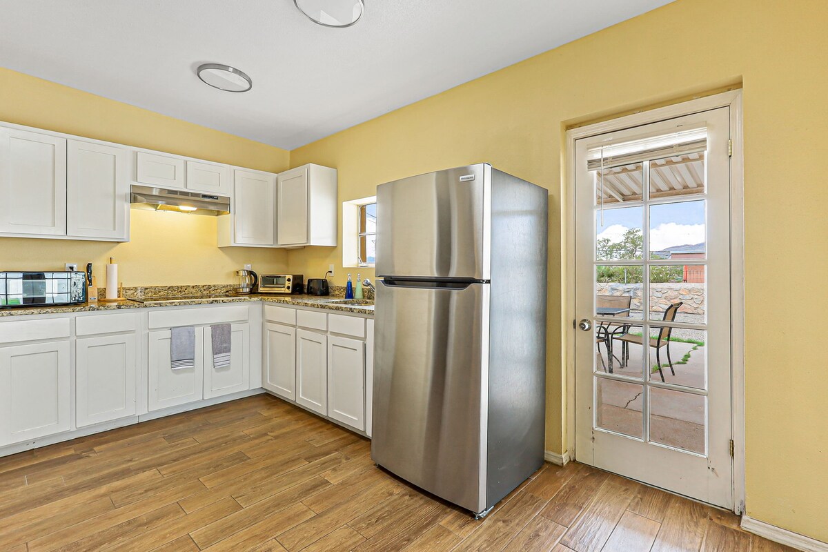 A beautiful, quaint, comfortable, clean full sized guesthouse, less than 10 min from the El Paso International Airport, Ft. Bliss Army Base, UTEP & TTHSC, Downtown - art & culture, the El Paso County Courthouse, the home of the El Paso Chihuahuas, shopping & so much more. For those who love the outdoors, you will find great hiking trails and some of the best climbing. And if you're looking for some great local eats, you'll find some of the best Mexican restaurants in the city just minutes away!