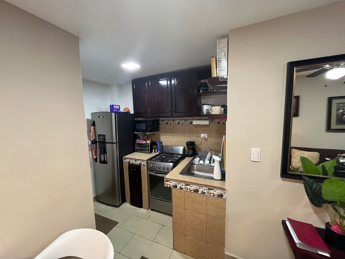 Disfruta de un espacio privado, cómodo y seguro, ideal para viajes de trabajo o escapadas en pareja. ✔ Parqueo techado con portón ✔ Entrada autónoma (llega a cualquier hora) ✔ Aire acondicionado ✔ WiFi estable para trabajar ✔ Cocina equipada El apartamento está diseñado para que te sientas como en un pequeño hotel: limpio, práctico y sin complicaciones. Perfecto para: * Viajeros de negocios que buscan privacidad. * Parejas que quieren tranquilidad. * Estancias cortas o largas.