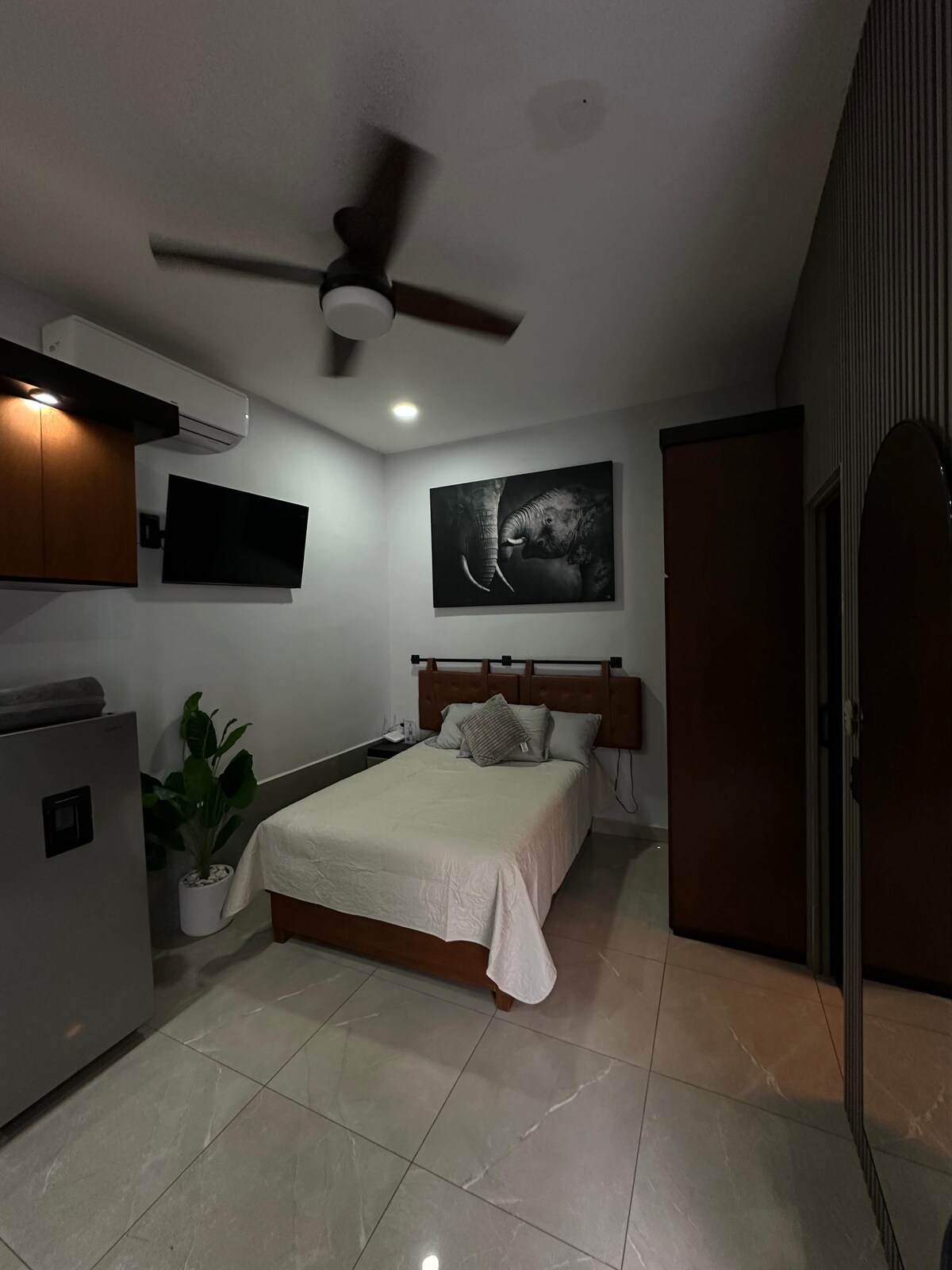 Estudio acogedor con patio privado Estudio Equipado con Gran Patio Privado y Grill Disfruta de un patio único con asador, mesa y TV exterior, ideal para relajarte. 🥩📺 Al interior, descansa en una cama Queen o sofá cama. Cuenta con cocina equipada (estufa, refrigerador, microondas, cafetera y vajilla), barra para comer, sala con TV y baño completo. El espacio perfecto que combina comodidad interior con un área social privada. ¡Reserva ahora!