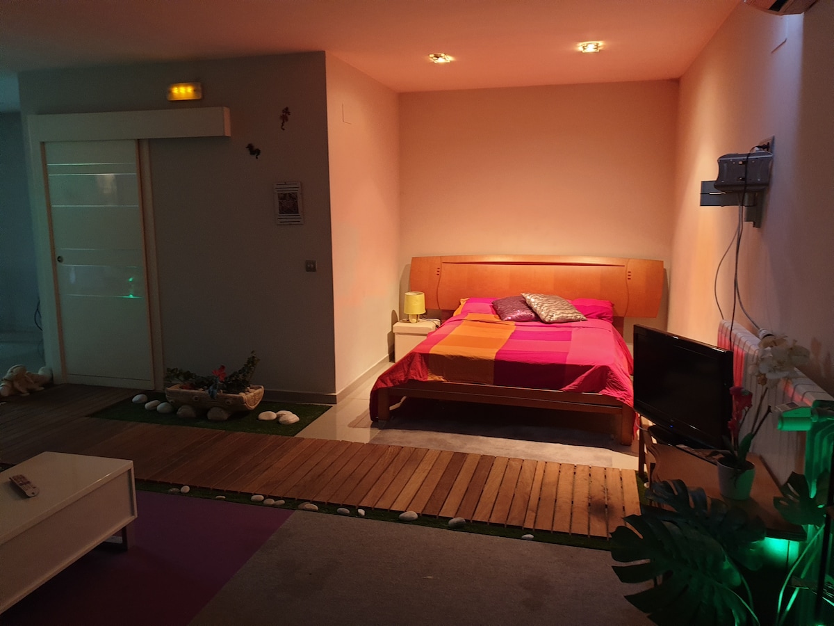 A „La Campera” egy vendégház 10 percre a Real belvárosától, félreeső és független, de ugyanazon a telken, ahol a családi otthonunk is található. A szálláshely elrendezése nagyon kényelmes, a földszinten található, és 2 hálószobából, konyhából, fürdőszobából és tágas nappaliból áll. 6 m x 10 méteres medencével. Füves terület is van, nagyon jó WI-FI-KAPCSOLAT. Az utcán gond nélkül parkolhatsz az utcán.