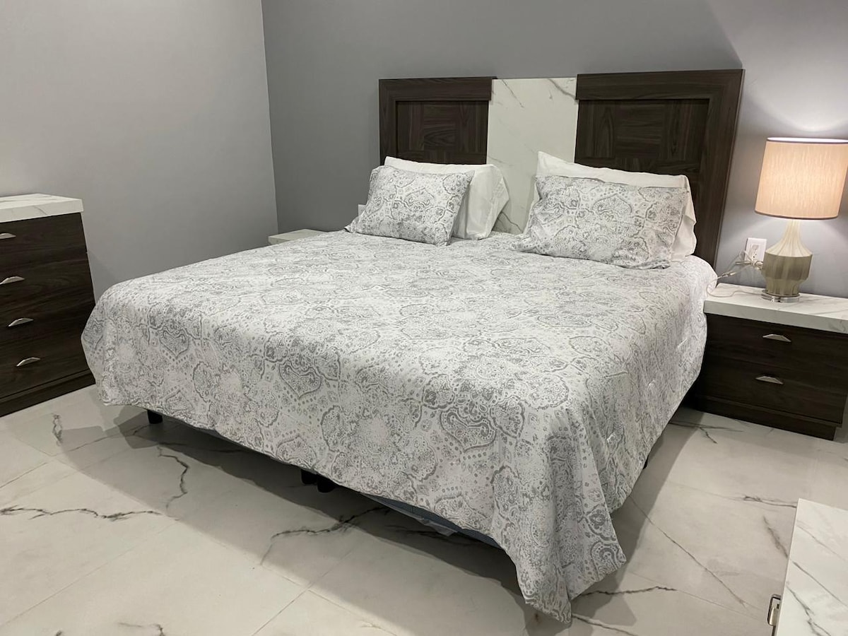 Relájate en este espacio tan tranquilo y elegante. Departamento cómodo en 2do piso, de 2 recamaras con SmartTv cada habitación, baño y cocina equipada, espacio tranquilo para relajarte después de visitar los parajes de la huasteca potosina, hasta para 6 personas (2 en colchón inflable) Cochera techada, portón eléctrico a partir de las 20:30 hrs A 5 cuadras del centro de la ciudad, a 3 cuadras de la avenida principal, tiendas de autoservicio cercanas, Oxxo a 2 cuadras, restaurares Fácil acceso.