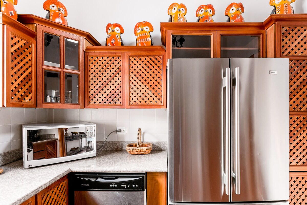 Az Antigua szívében, a boltíves utca déli oldalán található otthonunk luxusszintű kényelmet kínál, tökéletes figyelmet fordít a részletekre és az autentikus bájra. Kezdd a napot egy csendes kávéval a teraszon. Ezután, miután felfedezted ennek a gyarmati városnak a szépségét, tedd fel a lábad, és pihenj egy zúgó tűz mellett a három kandalló egyikében (elsődleges, nappali, terasz), miközben gyönyörködsz a környező vulkánokra nyíló lélegzetelállító kilátásban. Az otthonunk teljesen felszerelt, és készen áll arra, hogy jól érezd magad.