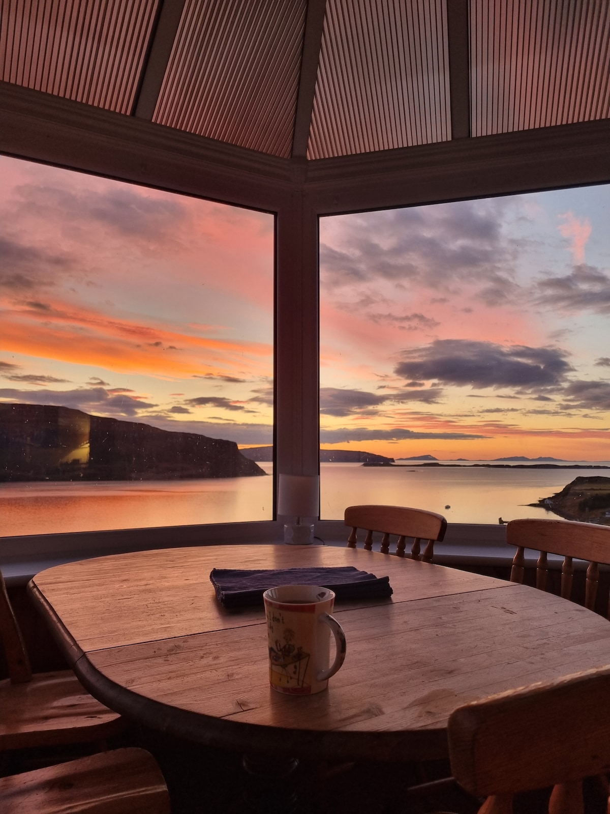 Üdvözlünk újra a Taigh Glas Studio-ban. Taigh Glas, amely Lochbayben, Waternishben, egy természeti örökségi félszigeten található, és az óceánra, a Stein Waterfrontra és a nyugati szigetek feletti naplementékre néz. A ház egy rövid sétára található a Lochbay Michelin-csillagos étteremtől és a Stein Inn étteremtől, valamint a Skye Skynstól és a jurtájuktól kávéval és házi készítésű süteményekkel. Központi helyen található Skye összes ikonikus látnivalója, például a Storr, a Quiraing, a Fairy Pools és a Fairy Glen.