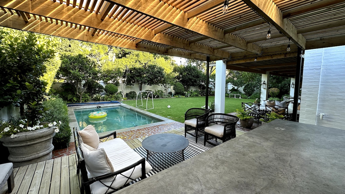 Élvezd az otthont távol az otthonodtól Claremont lombos déli külvárosában. Ez az eklektikus afro-Japandi ihletésű otthon tökéletes kiindulópont Fokváros strandjainak, borászatainak és városközpontjának felfedezéséhez. A konyha ennek az otthonnak a szíve, amely a tágas nappaliba, a fedett kültéri teraszra és a Braai-ra terjed ki. Green garden to enjoy the summer breeze and dine al fresco. Természetes fapadló a földszinten, zöld vonásokkal. Napenergia. 4 hálószoba, 3 fürdőszoba. Babakapuk, babaágy kérésre