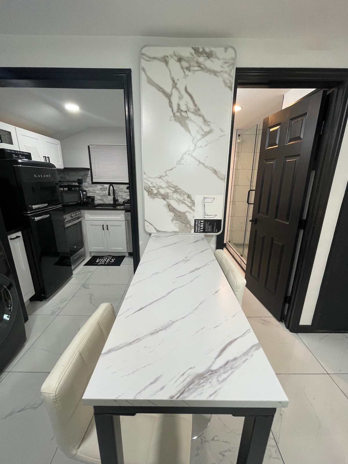 Experience a calm, modern retreat designed for business travelers, professionals, and extended stays. The home offers three queen beds with premium comfort, a sofa, and versatile fold-out sleepers and meditation chairs for shared accommodations. Enjoy a spa-inspired bathroom with rainfall and handheld showers, blue-light-charged stone elements for a relaxing atmosphere, a bright sunroom, and a private patio with a basketball goal for light recreation. *Utilities and Monthly cleaning included.
