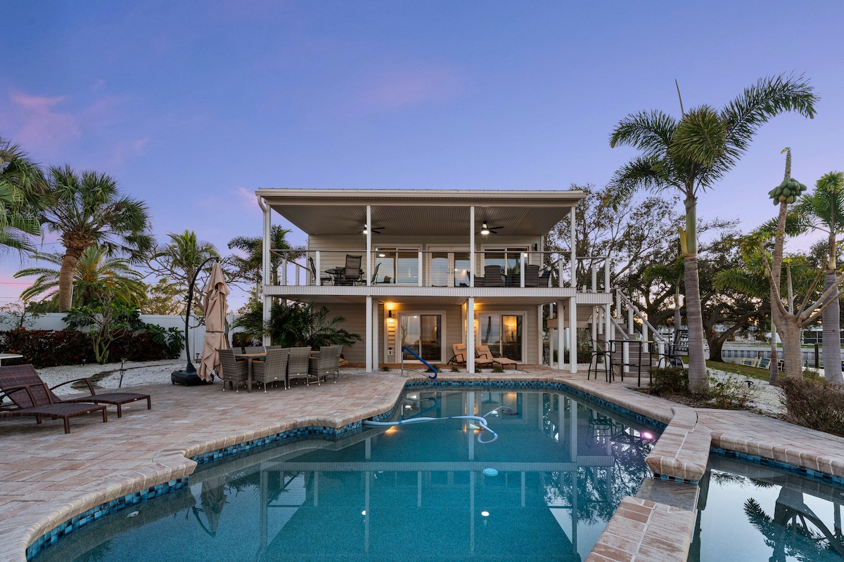Fűtött medence, európai dizájn, szauna, 100 hüvelykes mozi, legújabb Xbox, edzőterem és okostévé minden hálószobában. Professzionális konyha, 12 fős étkező ünnepségekhez, szabadtéri pavilon kandallóval és innovatív grillel, buja trópusi növényzet és lélegzetelállító naplementés kilátás. Könnyen megközelíthetőek a strandok, a kikötők, Dunedin, Tarpon Springs, valamint Clearwater éttermei és éjszakai élete. Biztonságos, tekintélyes környék – tökéletes családi szórakozáshoz vagy romantikus kiruccanásokhoz.