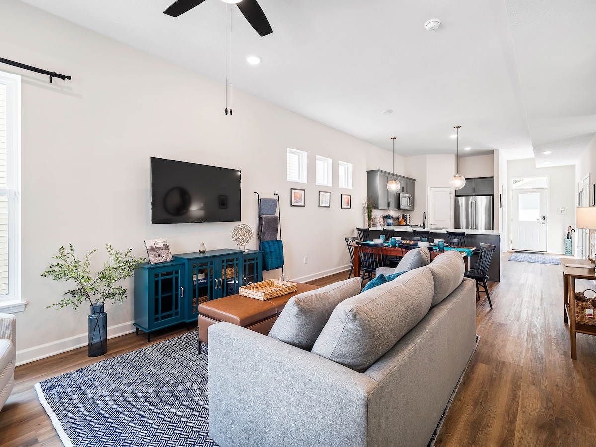 A 2021-ben felújított otthon egyedi ipari stílusa hozzájárul a modern megjelenéséhez. Az otthon 3 hálószobával rendelkezik, amelyekben king, queen méretű és teljes méretű ágyak találhatók. Az alagsorban van egy futonágy és egy kanapé a nappaliban, amely két további ember elszállásolására alkalmas. Az otthon tágas, két helyet kínál az embereknek a pihenéshez, az egyik az első emeleten, a másik pedig az alagsorban. Az alagsorban van tévé, „bár” és egy munkaállomás.