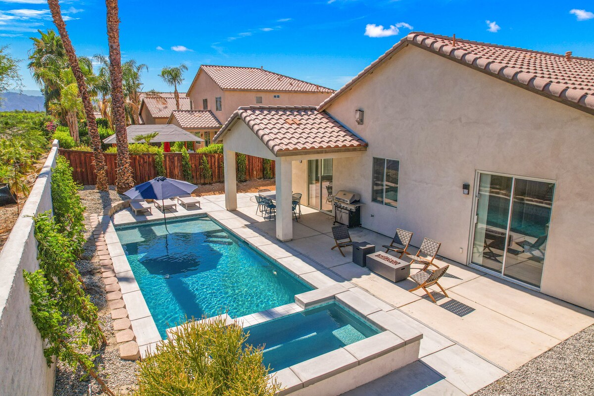 Minden vadonatúj és teljes házat újítottak fel a közelmúltban. Fűtött sós medence /gyógyfürdő és pingpongasztal, tűzrakóhely, pergola, zöld, kukoricalyuk, zenga a hátsó udvarban. Élvezd a gyönyörű naplementét a hegyekre nyíló kilátással. Kültéri étkezőasztal Weber grillezővel. Csocsó/70" TV YoutubeTV/Netflix/Disney+ szolgáltatással. Teljesen felszerelt ínyenc konyha, tisztított víz, kávéfőző ingyenes kávépárnákkal. Szállodai stílusú kényelmi szolgáltatások. Nagyon közel a Coachellához (5 perc), a BNP-hez(10 perc), az összes üzlethez, étteremhez. Csak kistestű kutyák. LIC-22-00028249