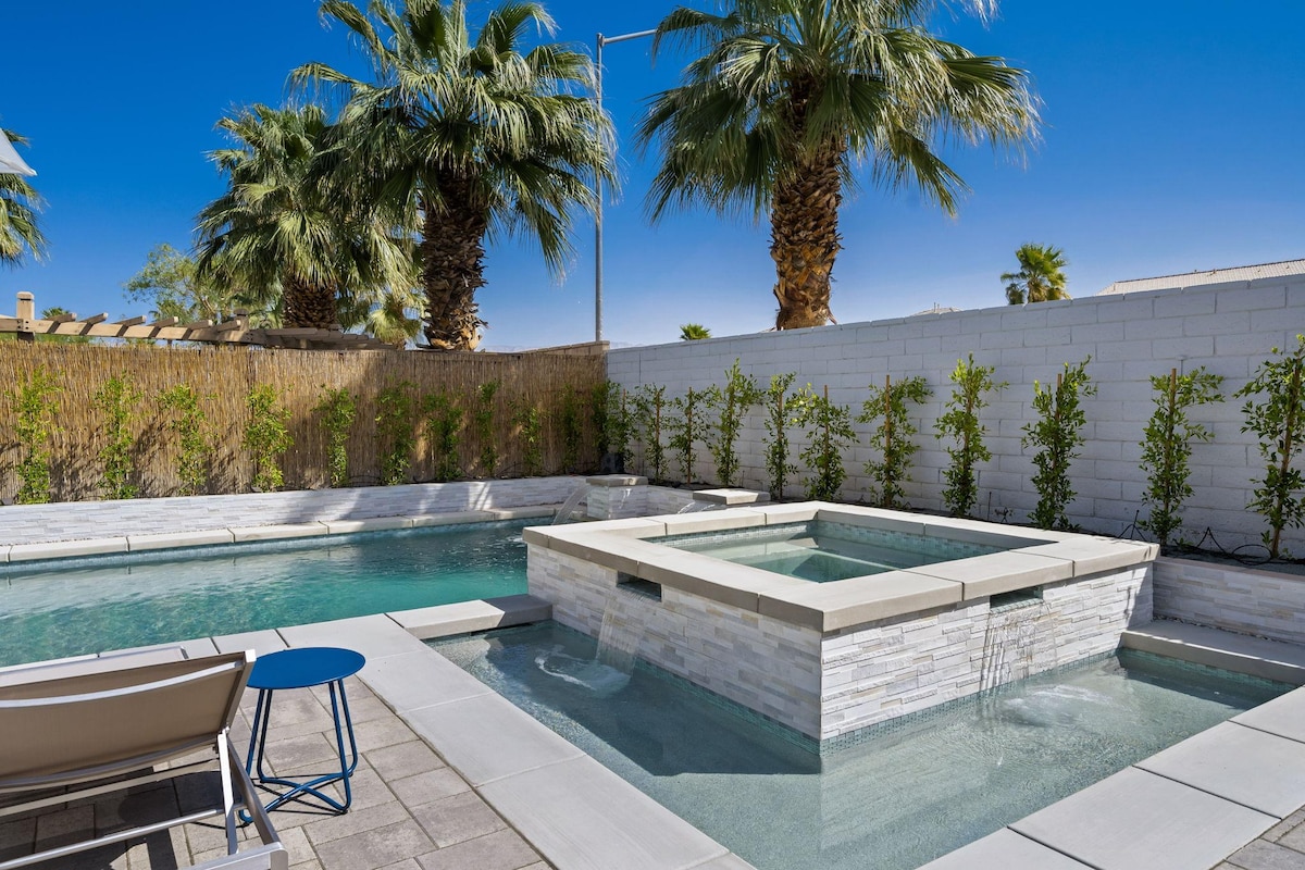 Üdv a privát sivatagi oázisodban! Lazíts és élvezd a napot egyedülálló hátsó udvarunkban, ahol egy lenyűgöző privát LAZY RIVER MEDENCE található Lusta folyó, kristálytiszta karibi stílusú medence a végtelen úszós szórakozáshoz, „tornádó” vízicsúszda és esőhíd. Élvezd a medencében található nyugágyakat a tökéletes kikapcsolódáshoz, a medencés kosárlabdát, a kültéri Bluetooth-hangszórókat, a grillt, az elegáns étkező- és társalgóhelyiségeket, valamint a csillagos sivatagi éjszakákhoz tökéletes pezsgőfürdőt. Felejthetetlen sivatagi kiruccanásod itt kezdődik