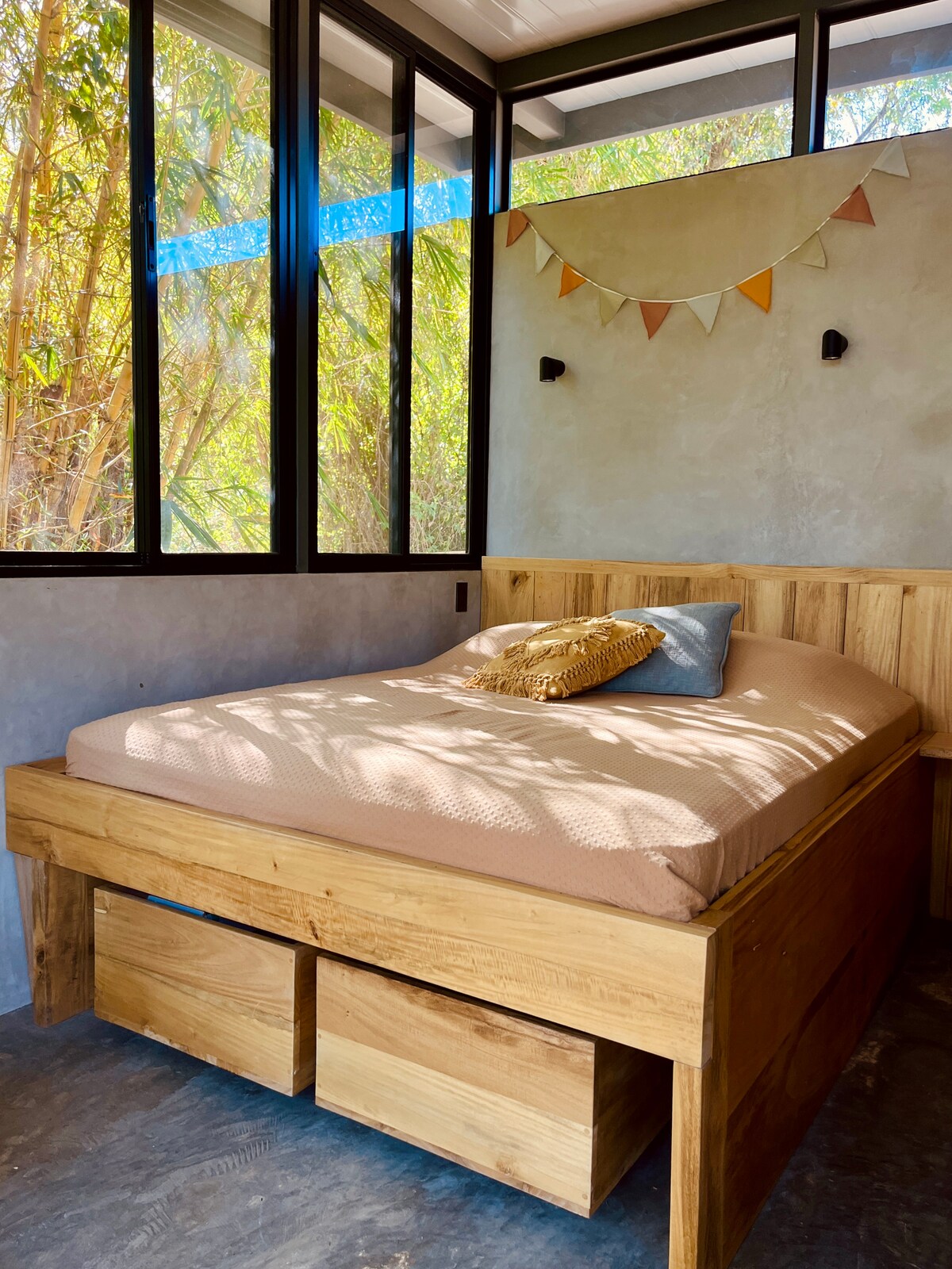Ez a stílusos A-keretes ház egyedülálló. Mal Pais buja dzsungelének szívében található. Legyen szó akár egy reggeli kávéról a függő teraszunkon, amely a folyót és a természetet hallgatja, akár egy pohár bor a szabadtéri jacuzzinkban, egynek érezheted magad ezzel a varázslatos oázissal Tökéletes elhelyezkedés azok számára, akik közel szeretnének lenni az eseményhez, de elég messze ahhoz, hogy élvezzék a természetet. Csak néhány perc autóútra az összes városi üzlettől/ étteremtől, és csak néhány perc sétára a legközelebbi strandtól egy kis naplementés italra.