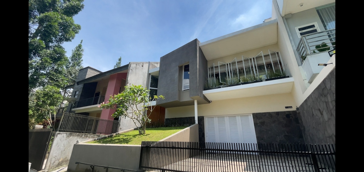Élvezd a modern minimalista dizájnnal rendelkező új házat a kertkomplexum 2. emeletén. Saját hozzáféréssel rendelkezel az Airbnb területéhez. Csendes és békés környéken található, de közvetlenül a város szívében. Mindössze 2 perc sétára a riau utcától és kávézóktól, valamint étteremtől a jl.anggrekben és a jl.nanasban. Az emeleti Tamanari teljes felszereltséggel, 2 hálószobával és 1 fürdőszobával, valamint teljesen felszerelt konyhával rendelkezik, amely megkönnyíti és biztosítja a Bandungban töltött időd kényelmét