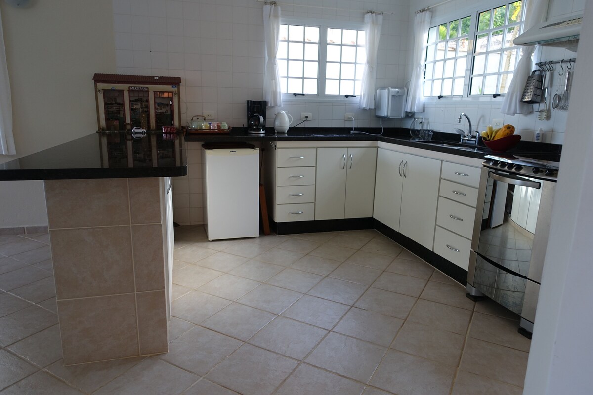 Vista fabulosa para montanhas e mar, ela está à 10 min da praia. Acomoda 10 pessoas, com todas as áreas exclusivas para os hóspedes. Oferece roupas de cama e banho, cadeiras de praia, cooler e guarda-sol. Ambiente tranquilo com segurança 24h. Ideal para estadias curtas ou longas, ótima internet com espaço para home office combinando produtividade e bem estar. Desfrute da experiência de estar em meio à natureza. A casa é pet friendly.